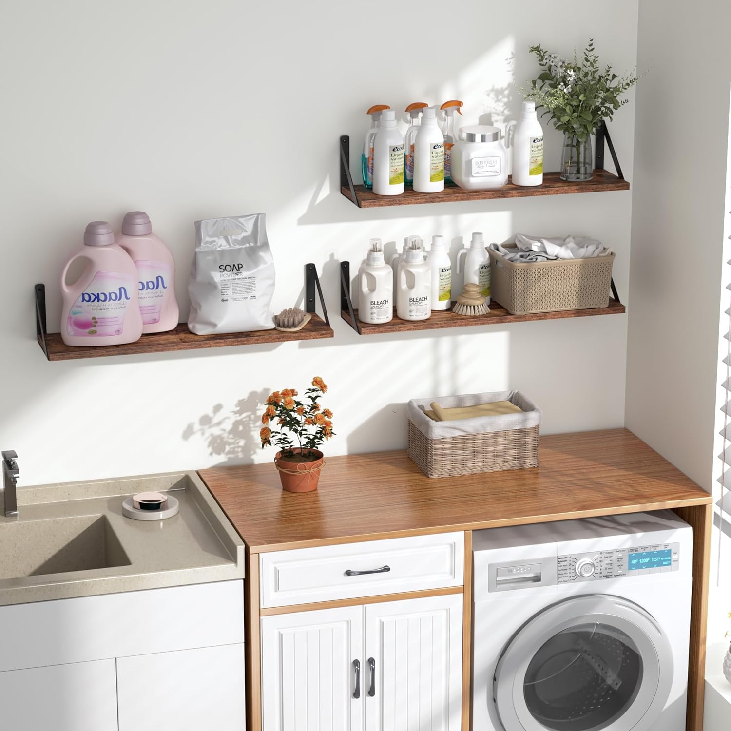 - ăELEGANT STYLING DESIGNăHigh quality rustic floating wood shelves reflects a vintage elegance that meets both your decorative and organizational needs. It complements the warm home style design and shows off a distinctive taste