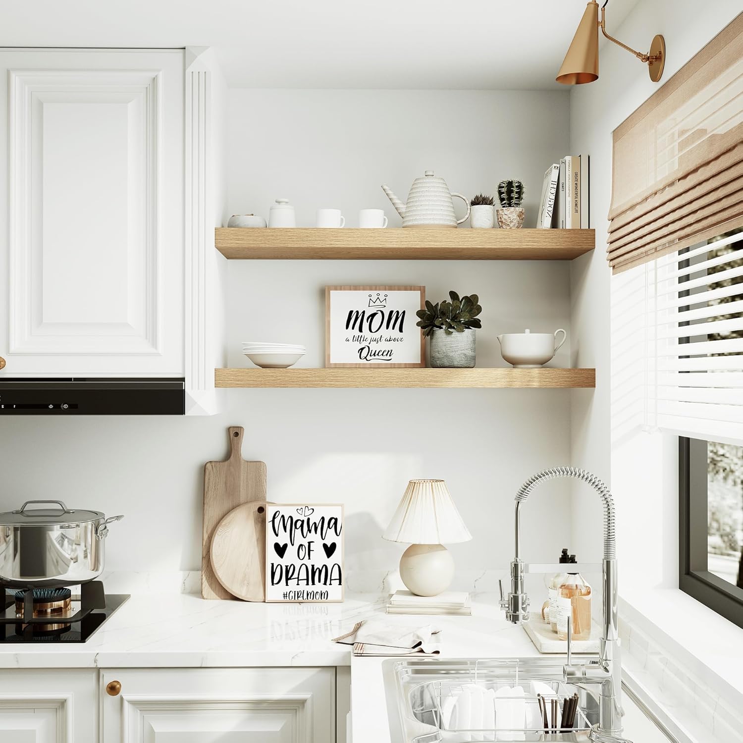 • Versatile & Functional - Our Decorative shelf for wall Adds character to any modern, traditional, rustic, or farmhouse decor home & kitchen styles.These shelves for wall decor above a small desk in your guest room, desks, fireplaces, over toilet storage shelf,living room wall decor, corner bookshelf, bathroom decor, office wall decor,or vanities and so on. If you are seeking easy-to-install, stylish floating shelves to add a contemporary touch to your home, these shelves are an excellent choice.