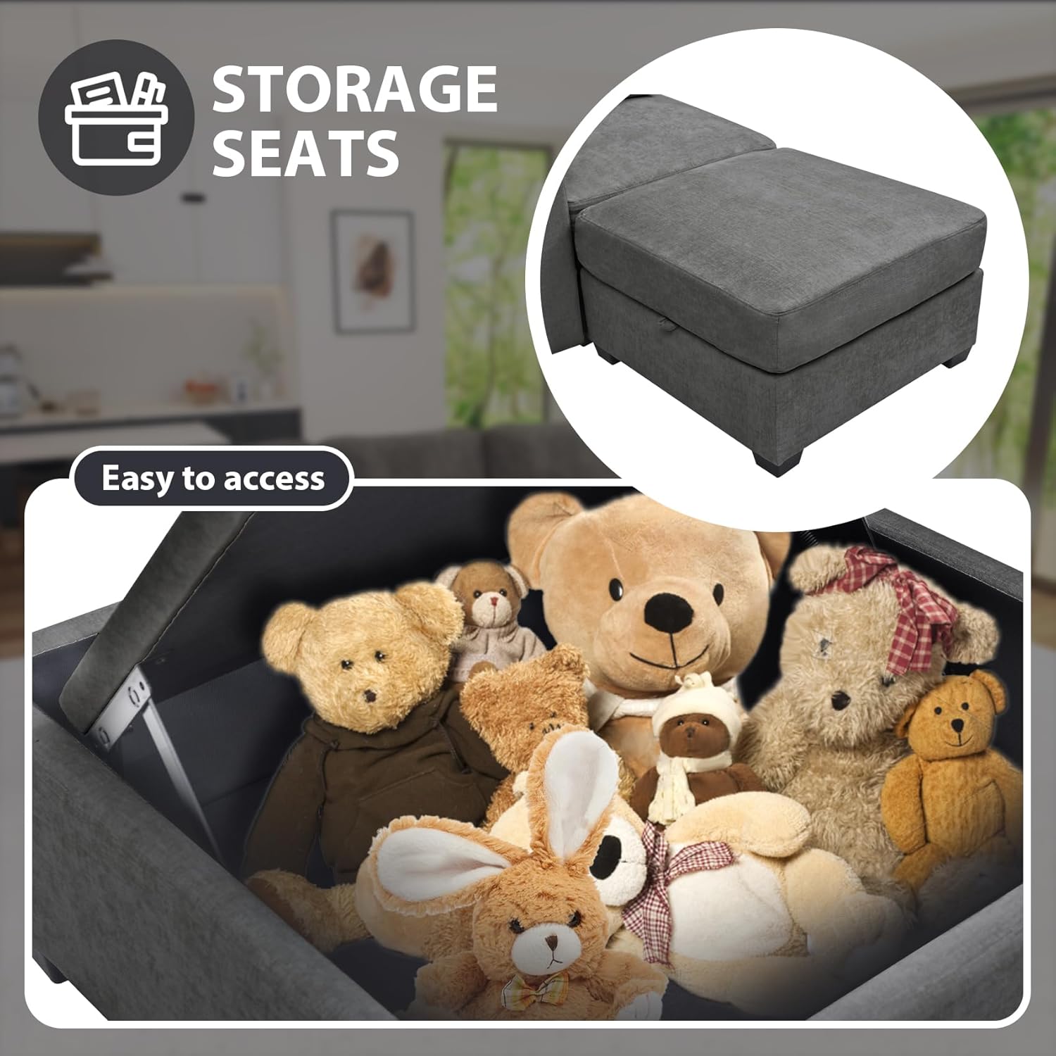 mestyl Modular Sectional Sofa Convertible U Shaped Sofa Couch Set with Storage for Living Room, Modern 4 Seater Modular Sectional Couch with 2 Movable Ottoman (Grey)