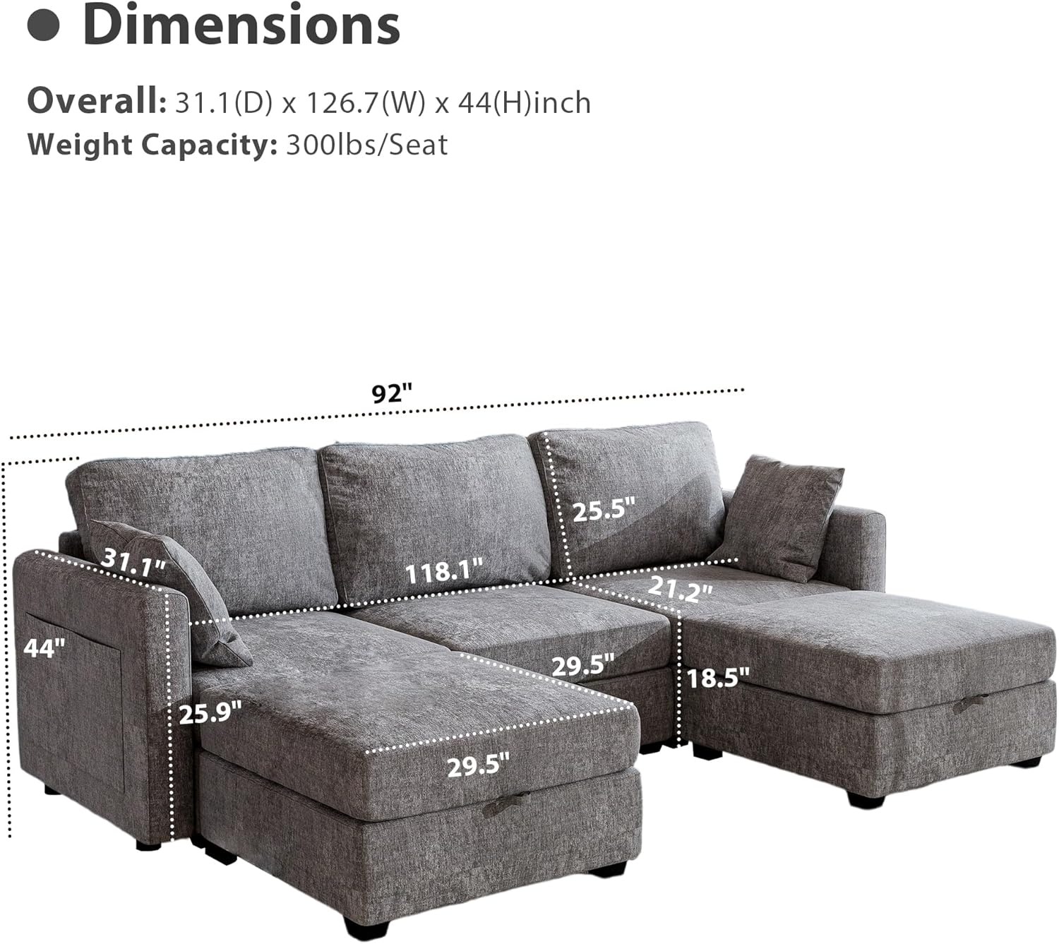 - Soft & Comfortable: The sofa adopts layered and thickened cushions, cloud-like softness combined with firm support. The spacious U-shaped layout provides ample seating, perfect for gatherings. Whether you're relaxing alone or hosting friends, this sectional sofa will give you a comfortable experience.