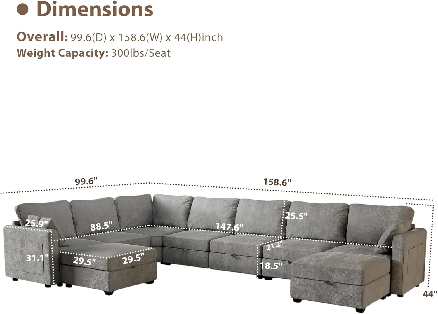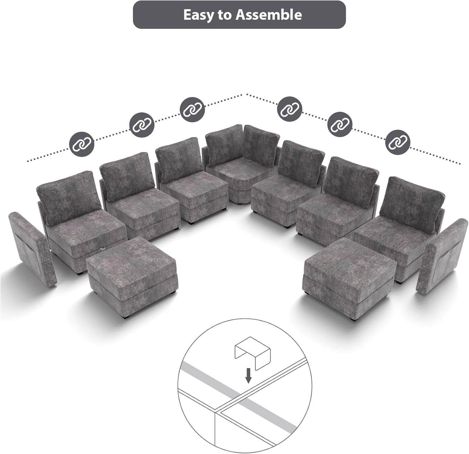 mestyl Modular Sectional Sofa Convertible Sofa Couch Set with Storage for Living Room, Modern 7 Seater Modular Sectional Couch with 2 Movable Ottoman (Grey)