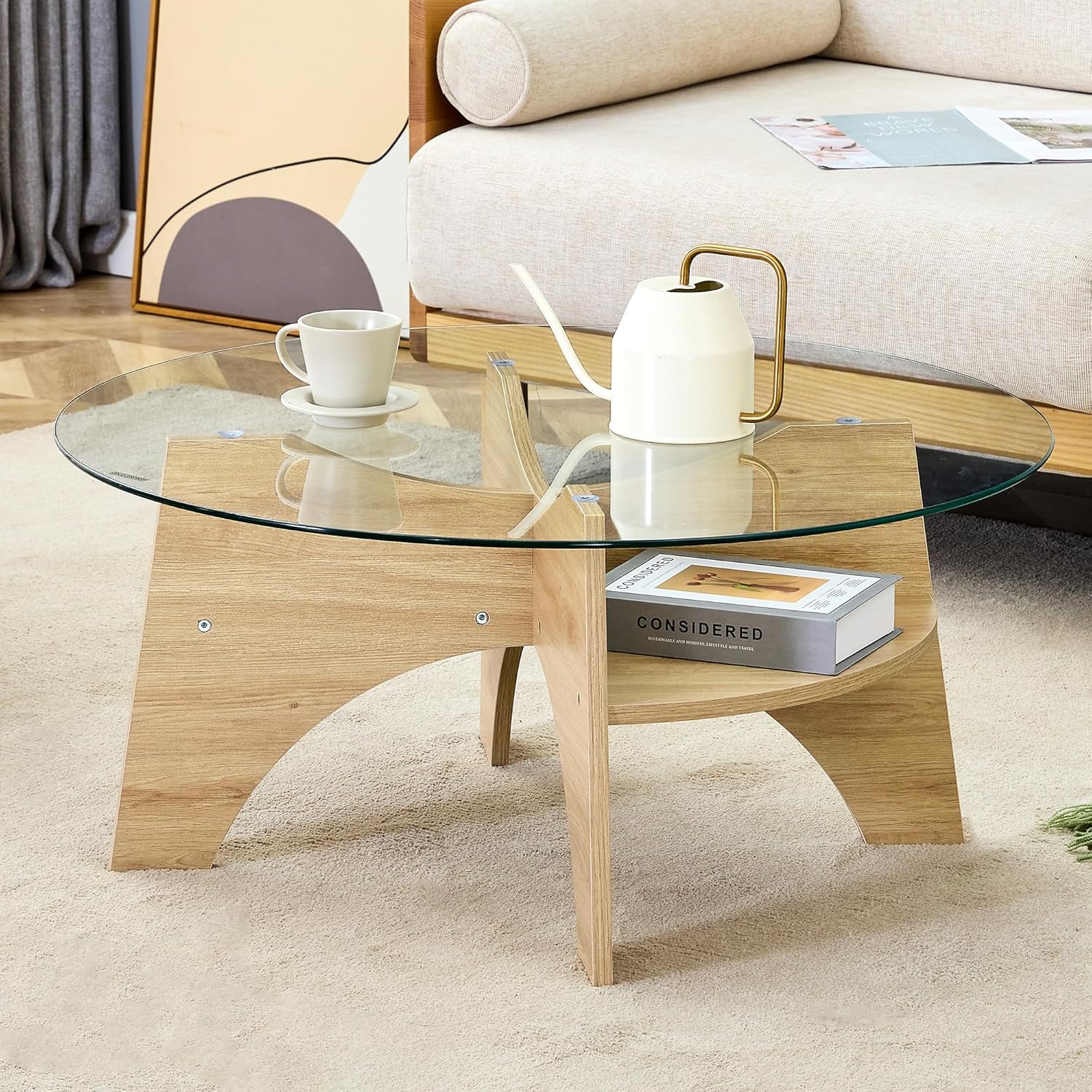 - Anti-scratch Design:The edges of the modern glass coffee table are designed with elegant curves to prevent scratches, and the round tabletop design prevents collisions and injuries, especially suitable for your children. Let you use more assured