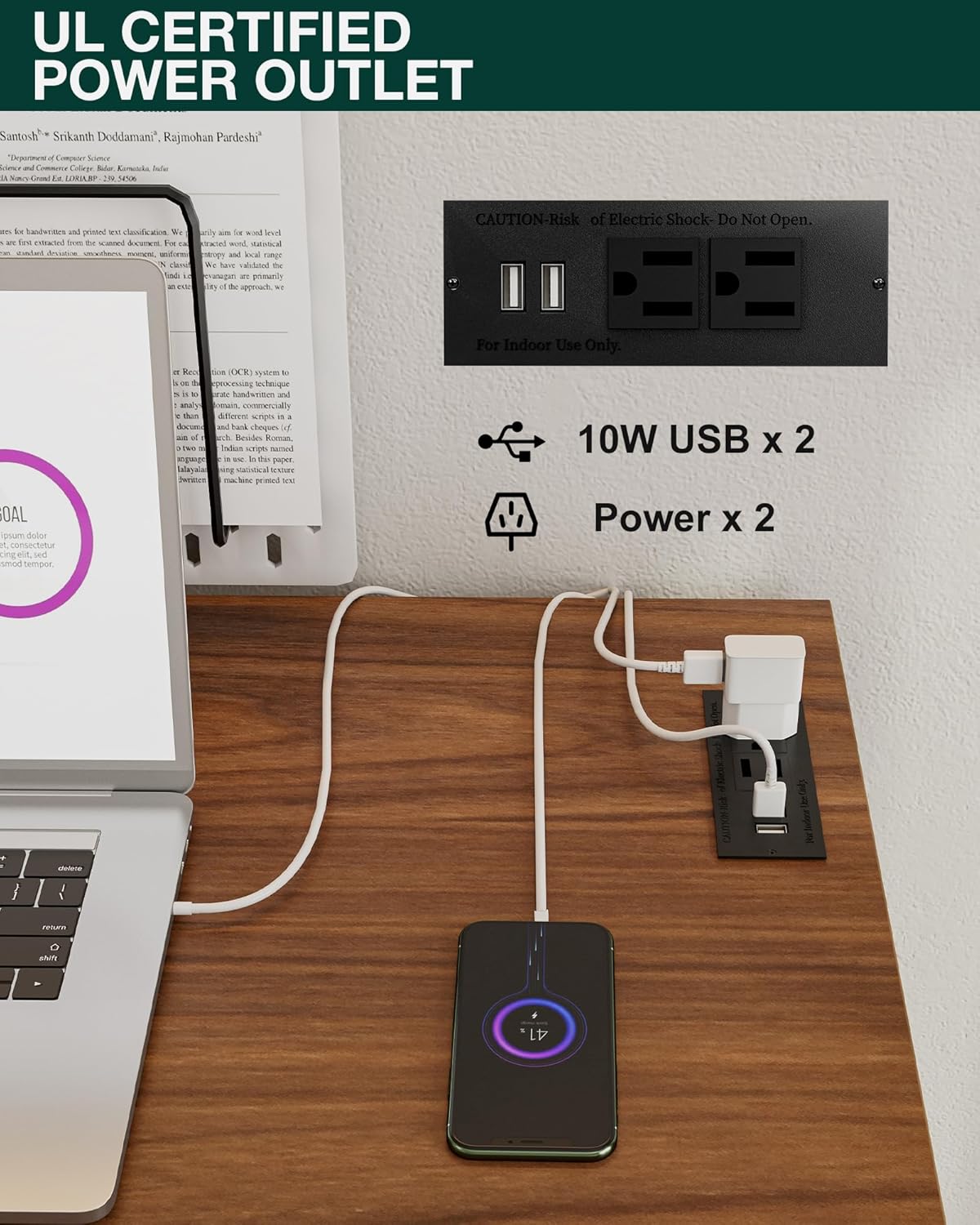 - 👍𝗜𝗡𝗧𝗘𝗚𝗥𝗔𝗧𝗘𝗗 𝗣𝗢𝗪𝗘𝗥 𝗛𝗨𝗕 – 𝗖𝗛𝗔𝗥𝗚𝗘 𝗘𝗩𝗘𝗥𝗬𝗧𝗛𝗜𝗡𝗚 𝗔𝗧 𝗢𝗡𝗖𝗘 — Stay powered and productive with 2 built-in AC outlets and 2 USB ports—perfect for laptops, phones, tablets, and more. No more messy extension cords or reaching for distant plugs; this smart design keeps all your devices charged and your workspace neat