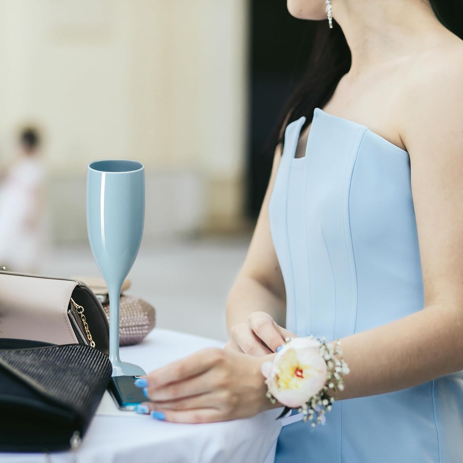 XUWAIDSGN Acrylic Champagne Flutes Toasting Glasses Unbreakable Mimosa Bar Reusable Wine Glasses Vintage Champagne Flutes Stemmed Drinking Cups 5.4 OZ for Christmas Birthday (10, Blue)