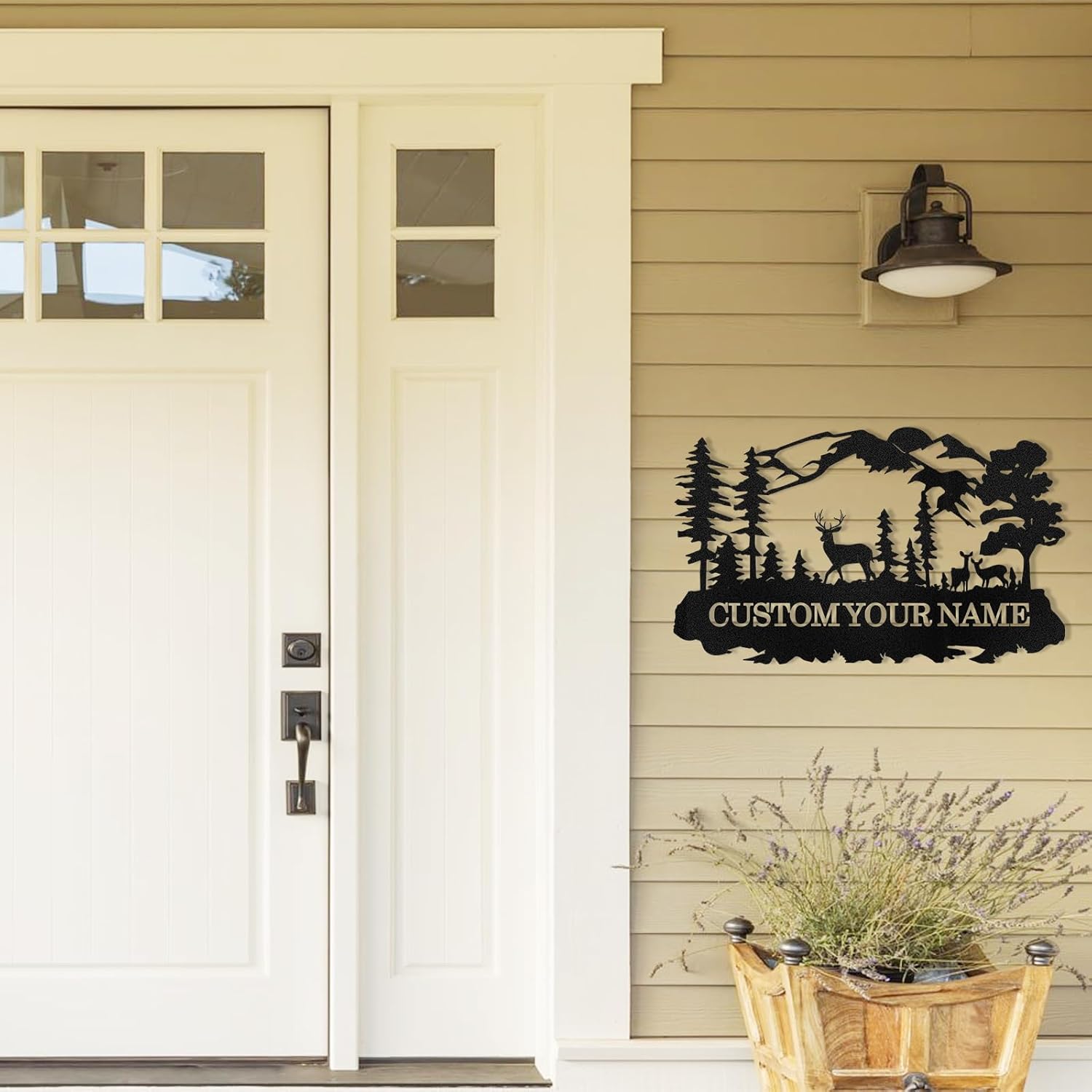 Custom Deer Metal Cabin Sign, Rustic Deer Wall Decor, Last Name Signs for Home, Custom Signs Outdoor Metal, Metal Wall Art, Hunting Decor, Hunter Gifts, Mountain Cabin Decor, Porch Sign