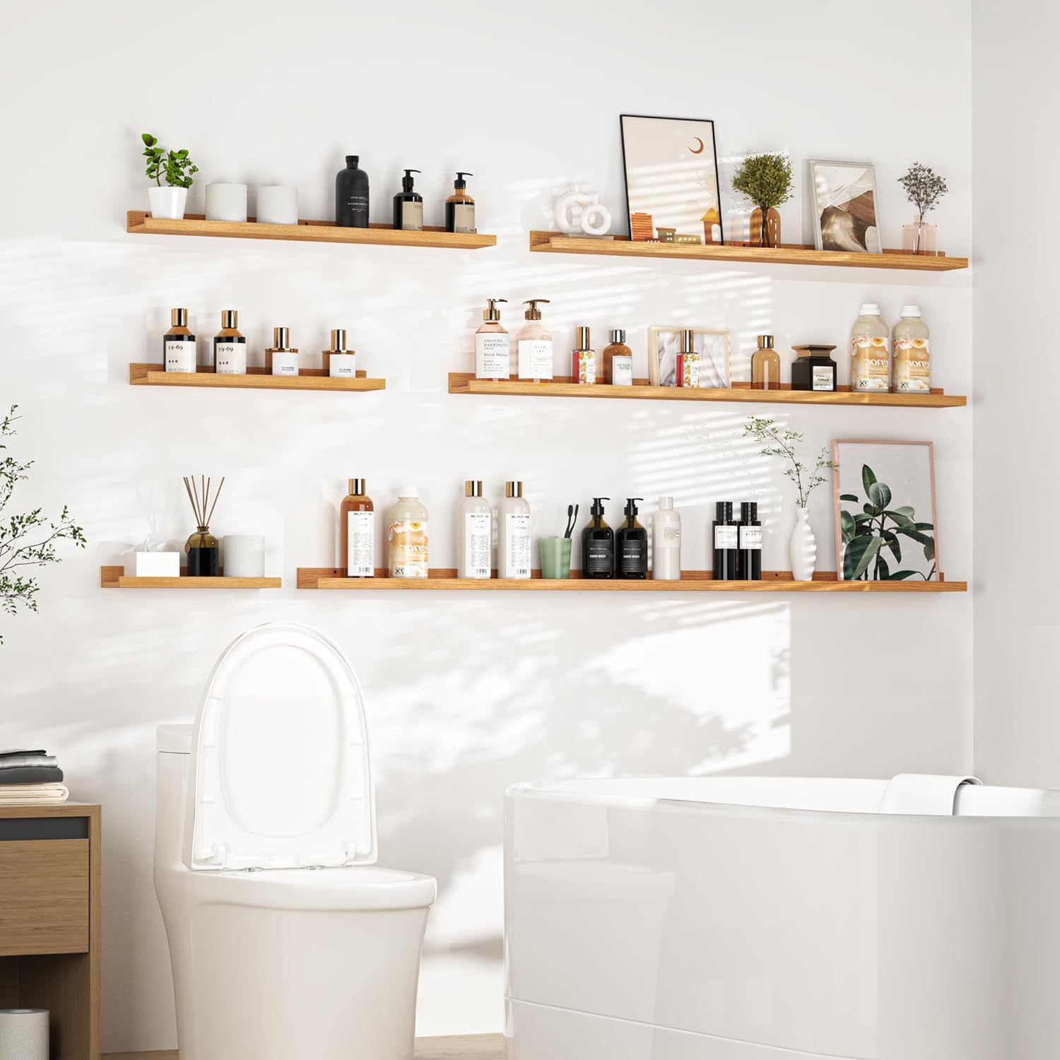 - Picture ledge Shelf for Walls: If you have dozens of pictures but don't know how to display them, Heimlove picture ledge shelves(especially large size) for walls are perfect! With our hanging shelves, store and display different types and sizes of photo frames in one place with no worries of falling off.