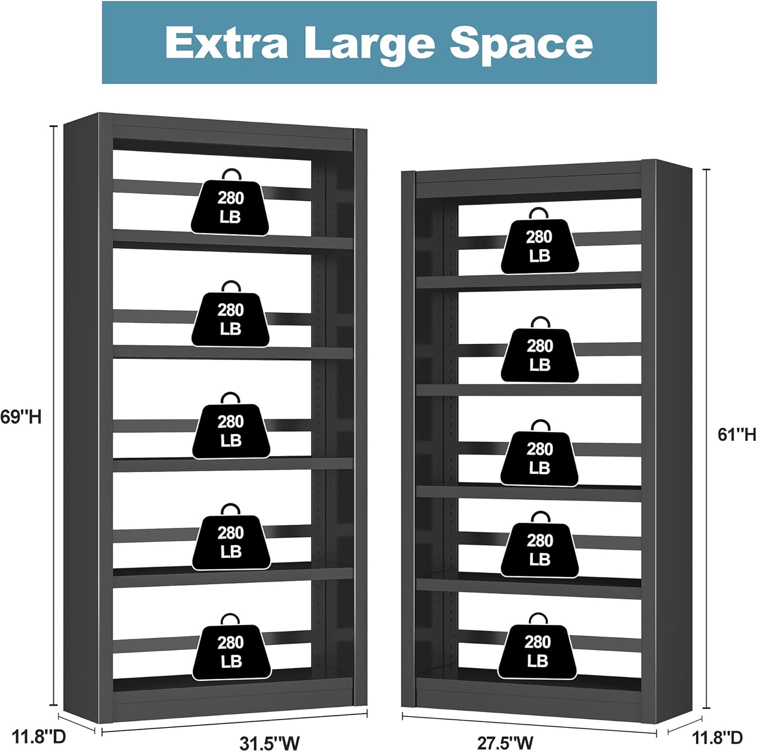 - ăSpacious & Heavy-Duty DesignăThis 5-tier metal sturdy bookshelf supports up to 280lbs per shelf, making it perfect for storing books, files, decor, or even heavy equipment. Ideal for both home and office use, itâs a top choice for heavy duty storage and office storage solutions.