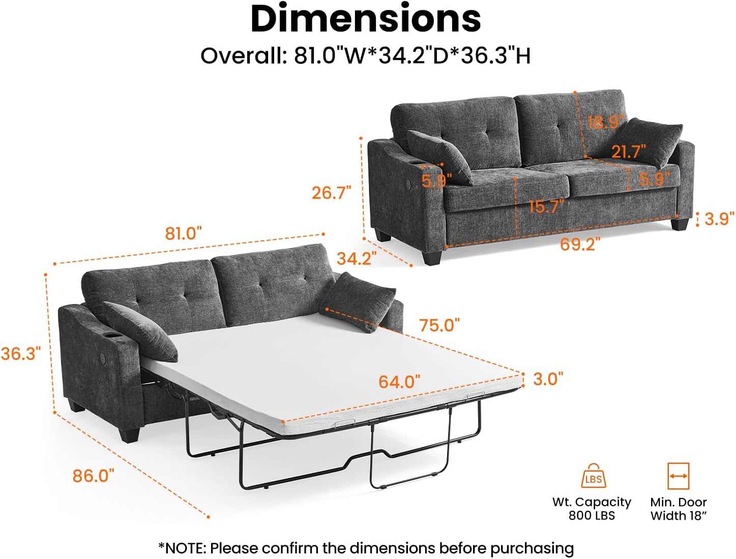 - ăMemory Foam Mattress for the Ultimate Comfort ExperienceăFeaturing a 3-inch memory foam mattress, this sofa bed strikes the perfect balance between softness and support. It molds to your body to relieve pressure points, ensuring a rejuvenating rest. Whether youâre lounging or sleeping, enjoy an experience thatâs as refreshing as it is comfortable