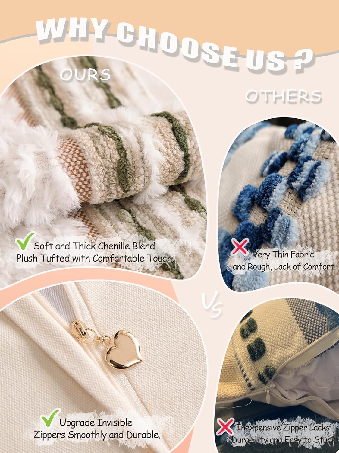 - PREMIUM QUALITY FABRIC: Made from a high-quality chenille and woven polyester blend, the throw pillow covers are ultra-soft and durable. The tufted design adds texture and dimension, creating a luxurious and inviting atmosphere.
