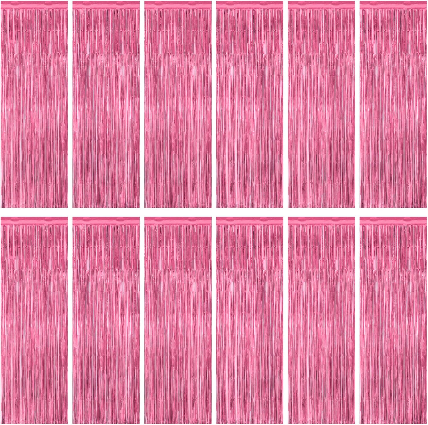 12 Pack Pink Backdrop, 3.28 FT x 7.05 FT Foil Fringe Curtains, Metallic Pink Tinsel Curtain Party Streamer Birthday Backdrop for Girl, Brithday Decorations Bachelorette Party Supplies