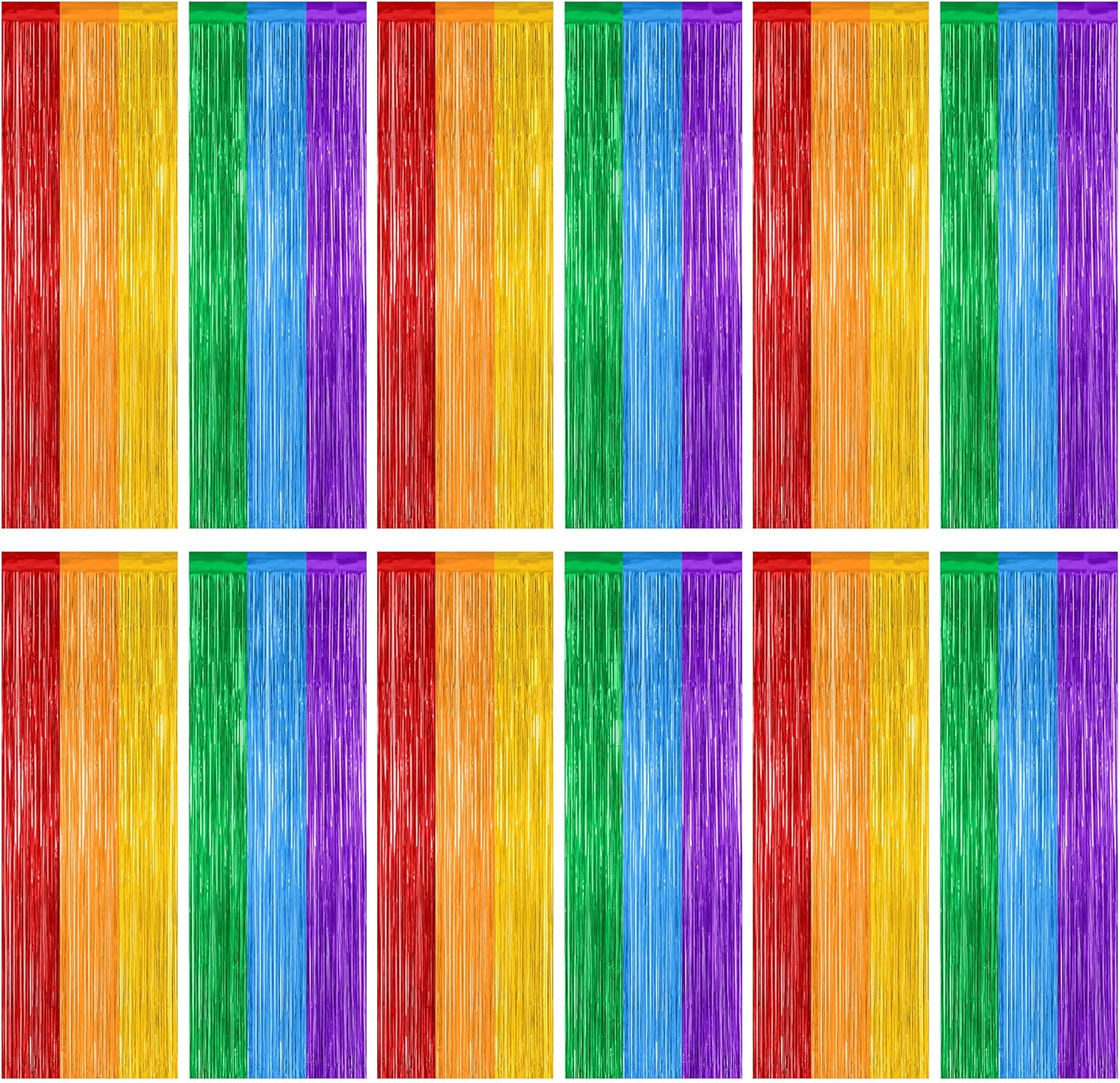 - Package Includes: This set includes 12 pcs rainbow foil curtains in rainbow colors, each measuring 3.28 ft x 7.05 ft, feel free to cut them to your desired length.
