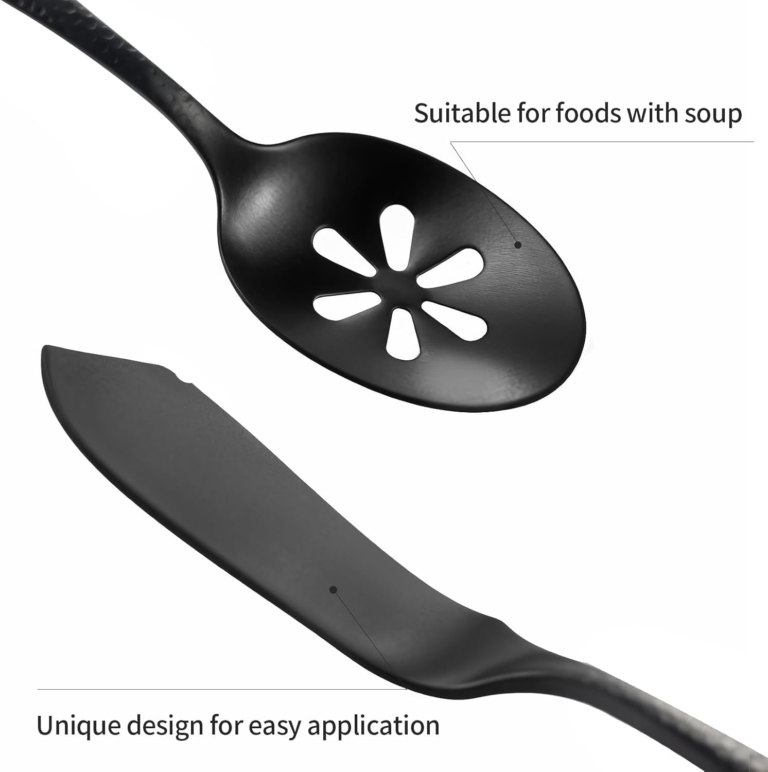 Silverware 45-Piece Matte Black Hammered Flatware Set with Serving Utensils, Stainless Steel Thick Handle Matte Polished Cutlery Set for Wedding Hotel Restaurant, Service for 8