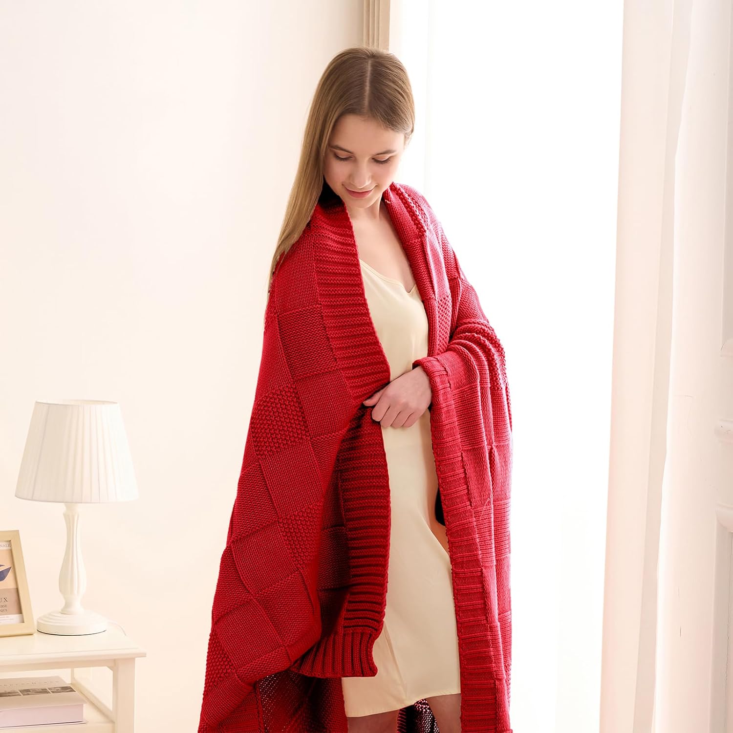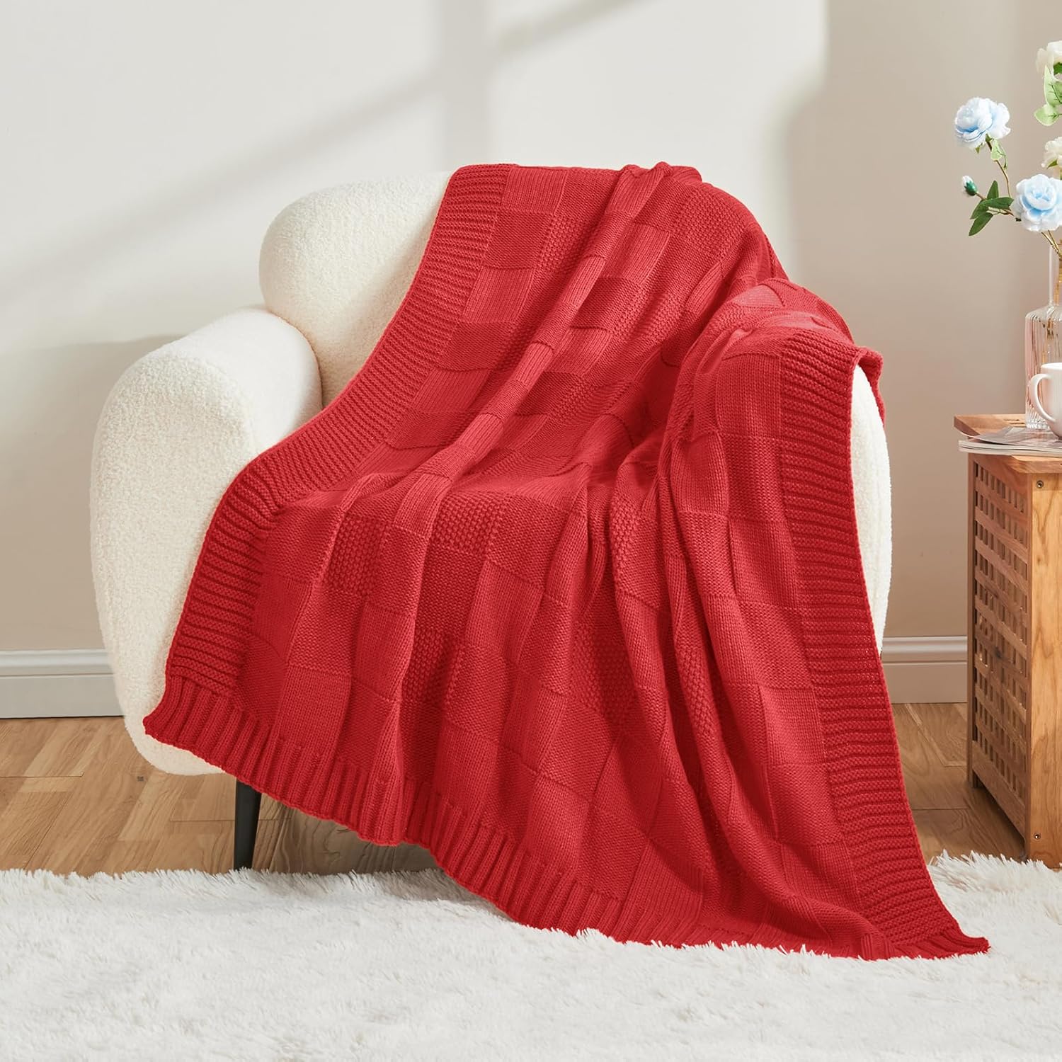 CozeCube Knit Throw Blanket,Christmas Red Checkered Bedroom Blanket for Couch,Soft Cozy Warm Knitted Blanket for Bed Sofa Living Room,Decorative Spring Fall Throw Blanket 50"X60",Christmas Red