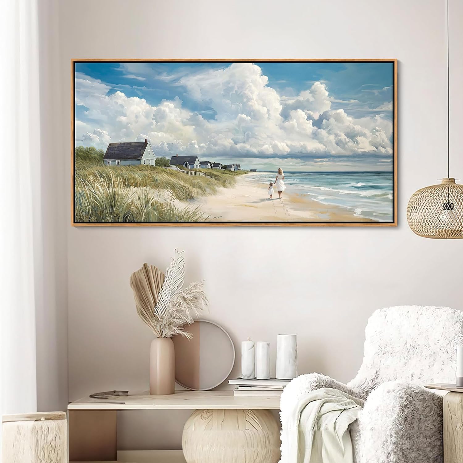 • Coastal Canvas Wall Art Size: This 20×40 inches coastal canvas wall art captures the tranquil beauty of the ocean and beach, bringing a refreshing coastal vibe to your living room, bedroom, or office.