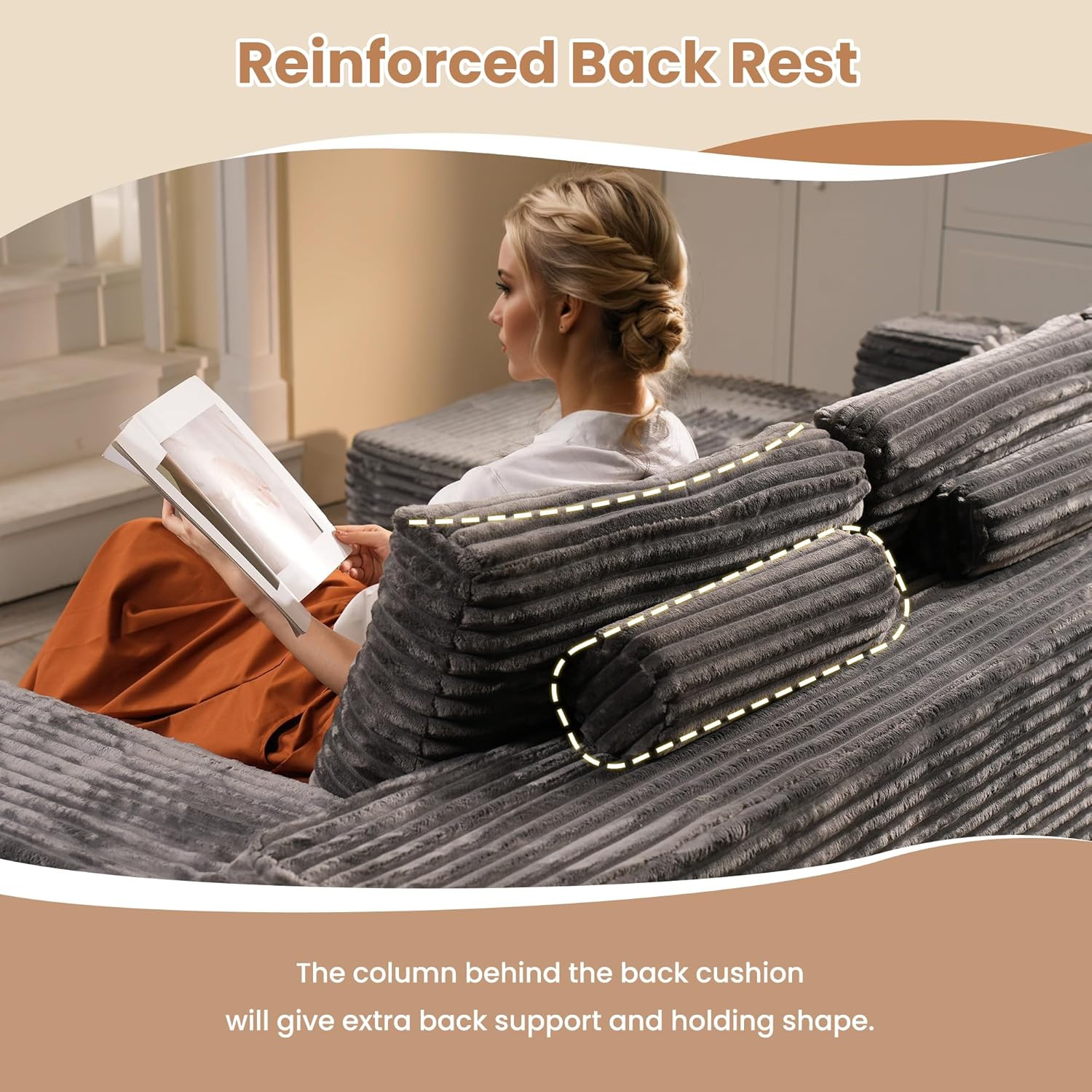 HOOOWOOO Cloud Sectional Couches for Living Room,Modular Sectional Sofa No Assembly,165X110 Inch Plush Corduroy Large U Shaped Floor Couch Set with Deep Seat Chaise Lounge(Gray)