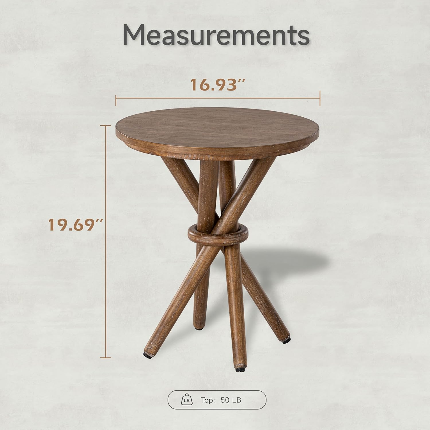 Round Wood End Table Farmhouse Wooden Side Table Rustic Plant Stand with Bundled Legs for Living Room, Office, Walnut