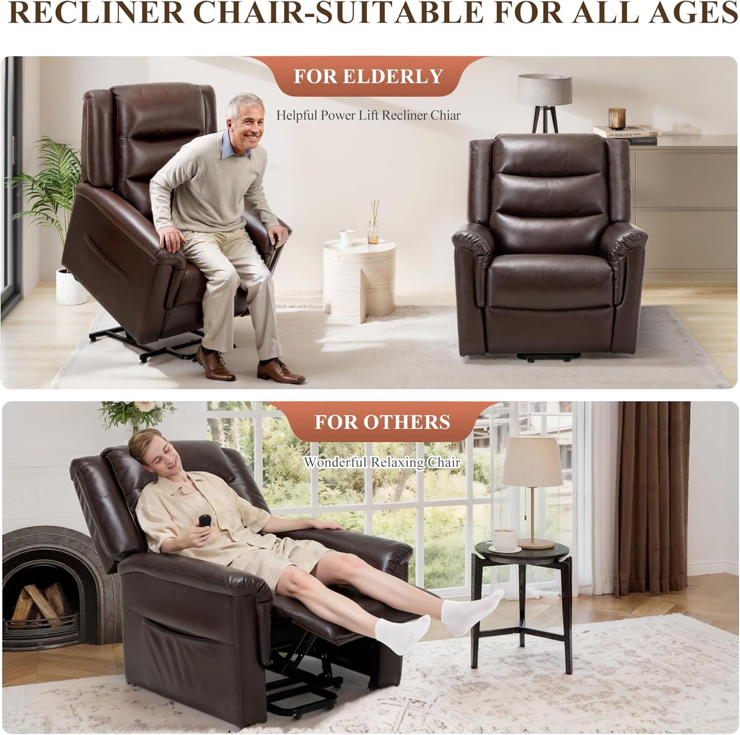 COLAMY PU Leather Electric Power Lift Chair,Lift Recliner Chair with Thick Cushioned Padding Backrest for Living Room, Office, Bedroom (Darkbrown)
