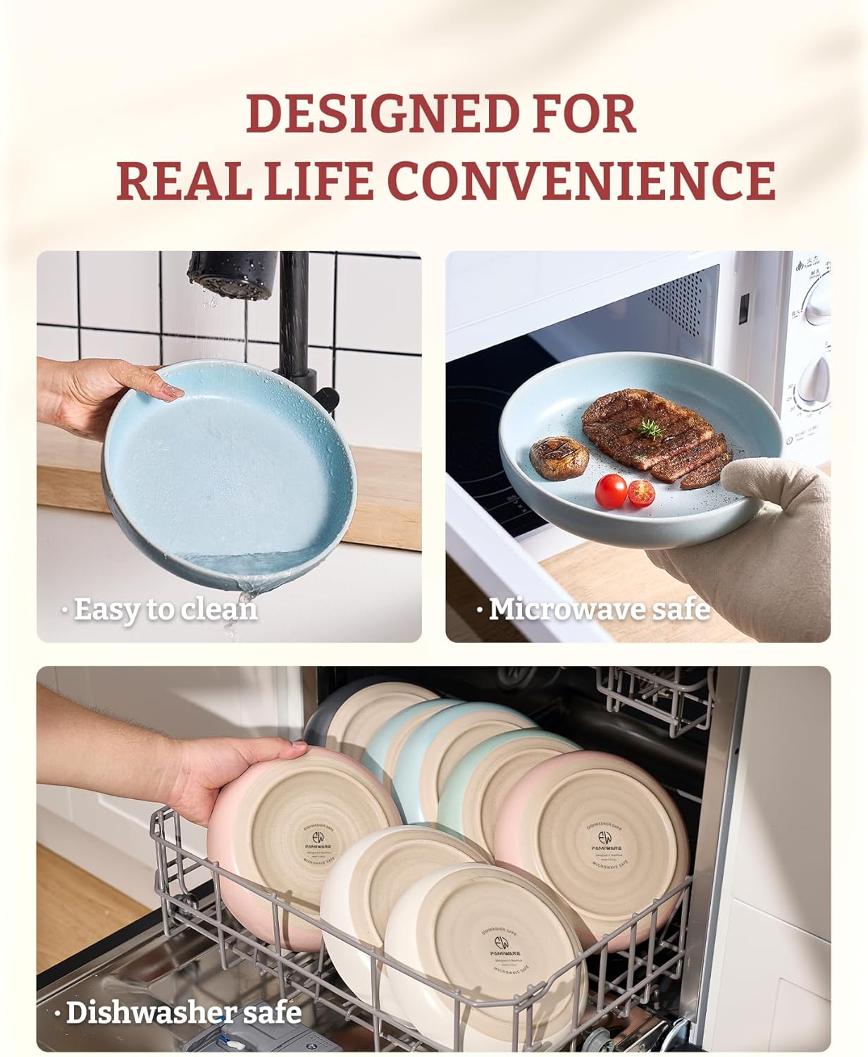 - WITHSTAND THE TEST OF TIME - Made of organic and natural clay, these bowl plates are fired at 2340℉ for 13.5 hours, durable and shatterproof for long-term use