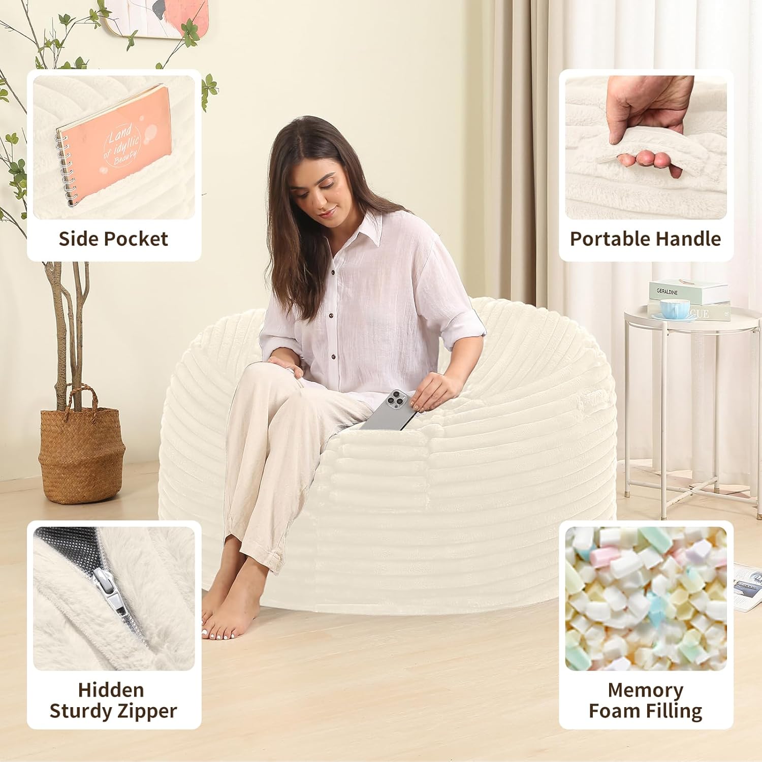 - SOFT & COMFY: The fluffy bean bag chair cover is made of skin-friendly and cosy rabbit fur fabric, giving a comfy and soft touch. And the removable cover is machine washable for easy recycling