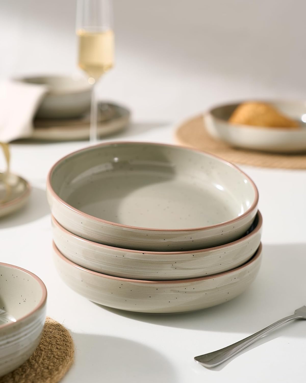 famiware Milkyway 33 oz Bowl Set, Pasta Bowls Set of 4, Salad Bowls, Double Reactive Glaze, Sturdy & Stackable, Ideal for Housewarming, Festivals, Matcha Green with Speckles