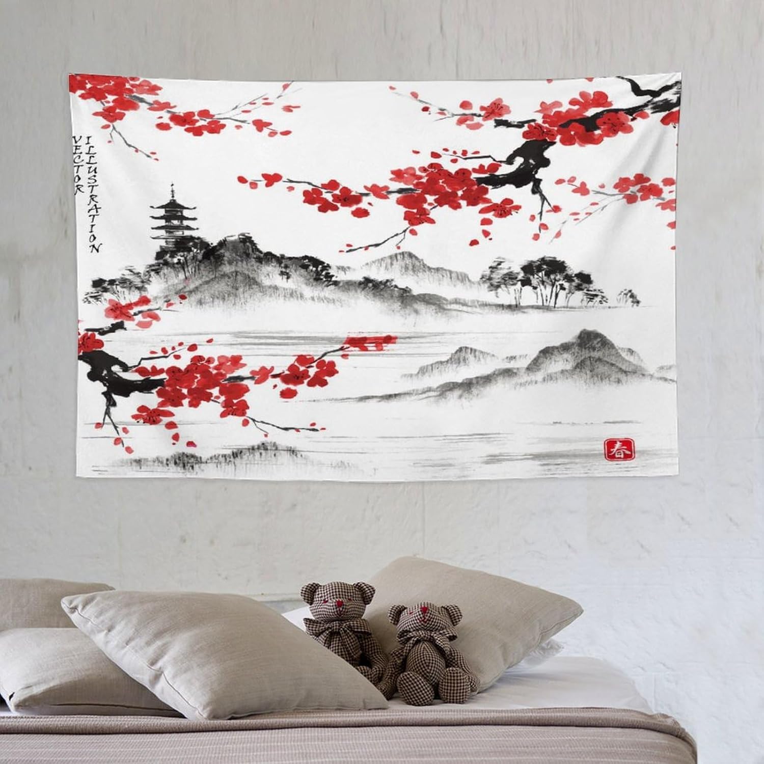 Cherry Blossoms Tapestry, Japanese Fuji Mountain Tapestry, Asian Japanese Wall Tapestry, Nature Landscape Tapestries for Bedroom Living Room Decor 60"x40"