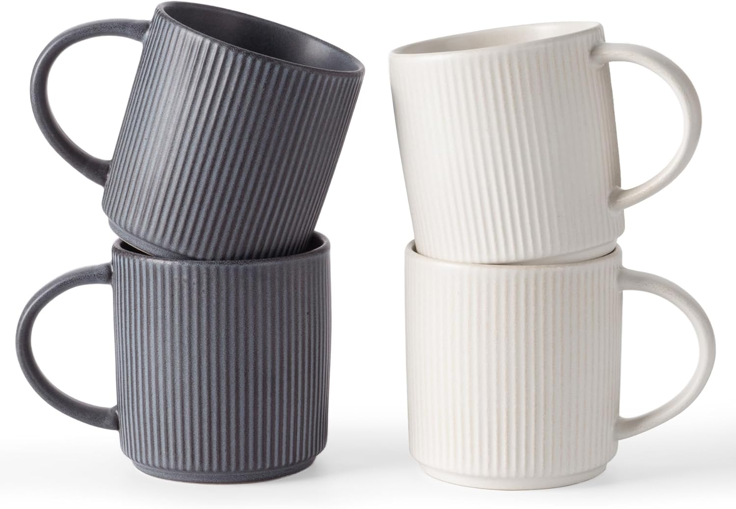 famiware Coffee Mug Set for 4, Star 12 oz Catering Mugs Cup Set with Handle for Coffee, Tea, Cocoa, Milk - Ceramic Stoneware Drinkware Set, Matte White + Matte Black