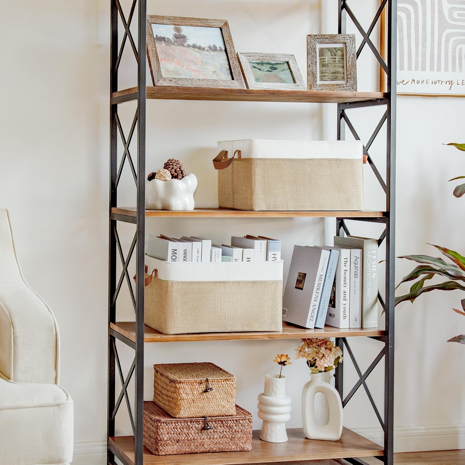 - Metal Frame Structure - The shelf baskets can keep its surroundings upright even if there are no items inside. It uses a solid iron frame inside, which has a stable structure and is not easily deformed.