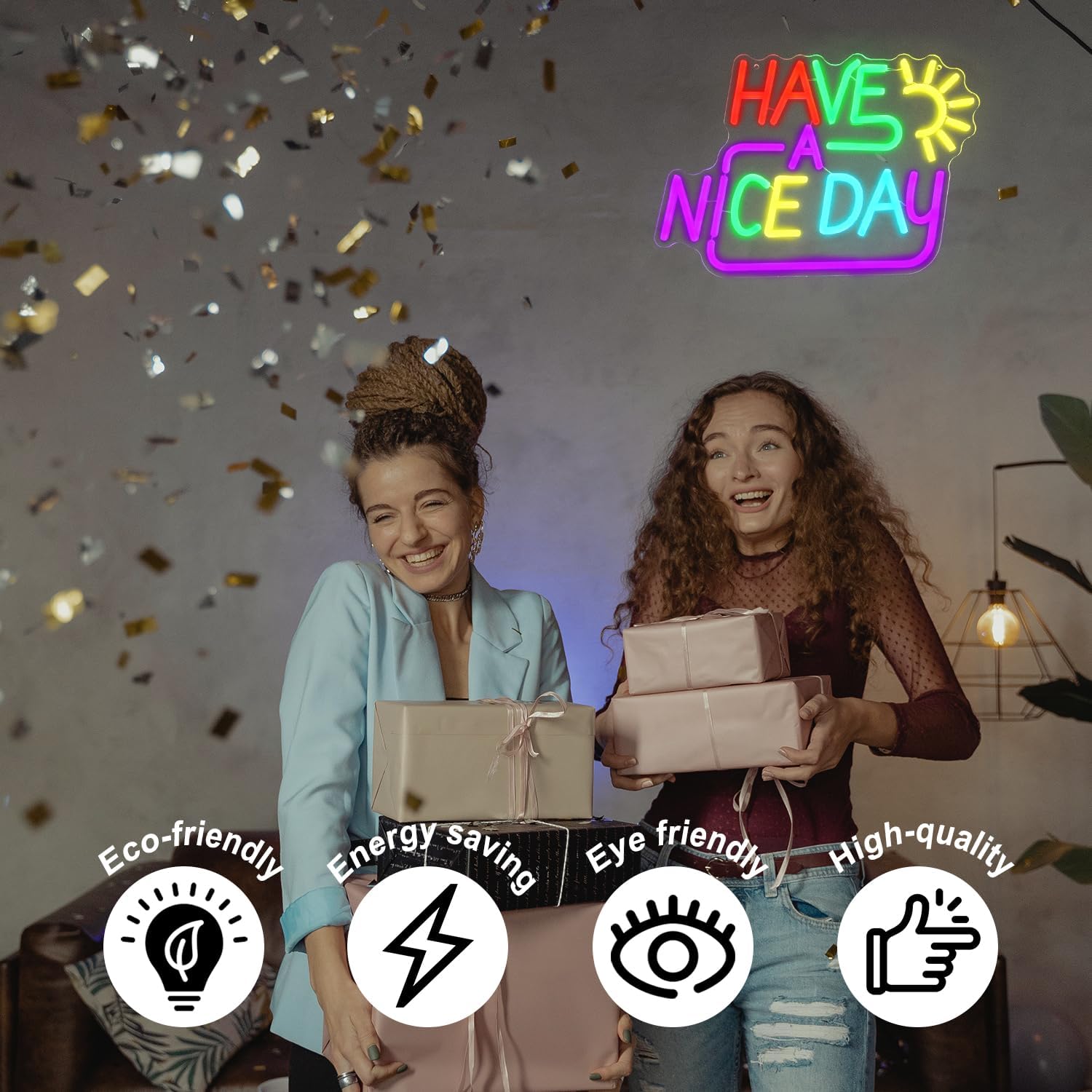 - 【Home Room Decor】The "Have a Nice Day" LED sign is an excellent choice for decorating bedrooms, living rooms, game rooms, schools, offices, or for use at birthday parties. It also serves as a thoughtful gift for birthdays, Christmas, New Year's, and anniversaries for friends, family, or children.