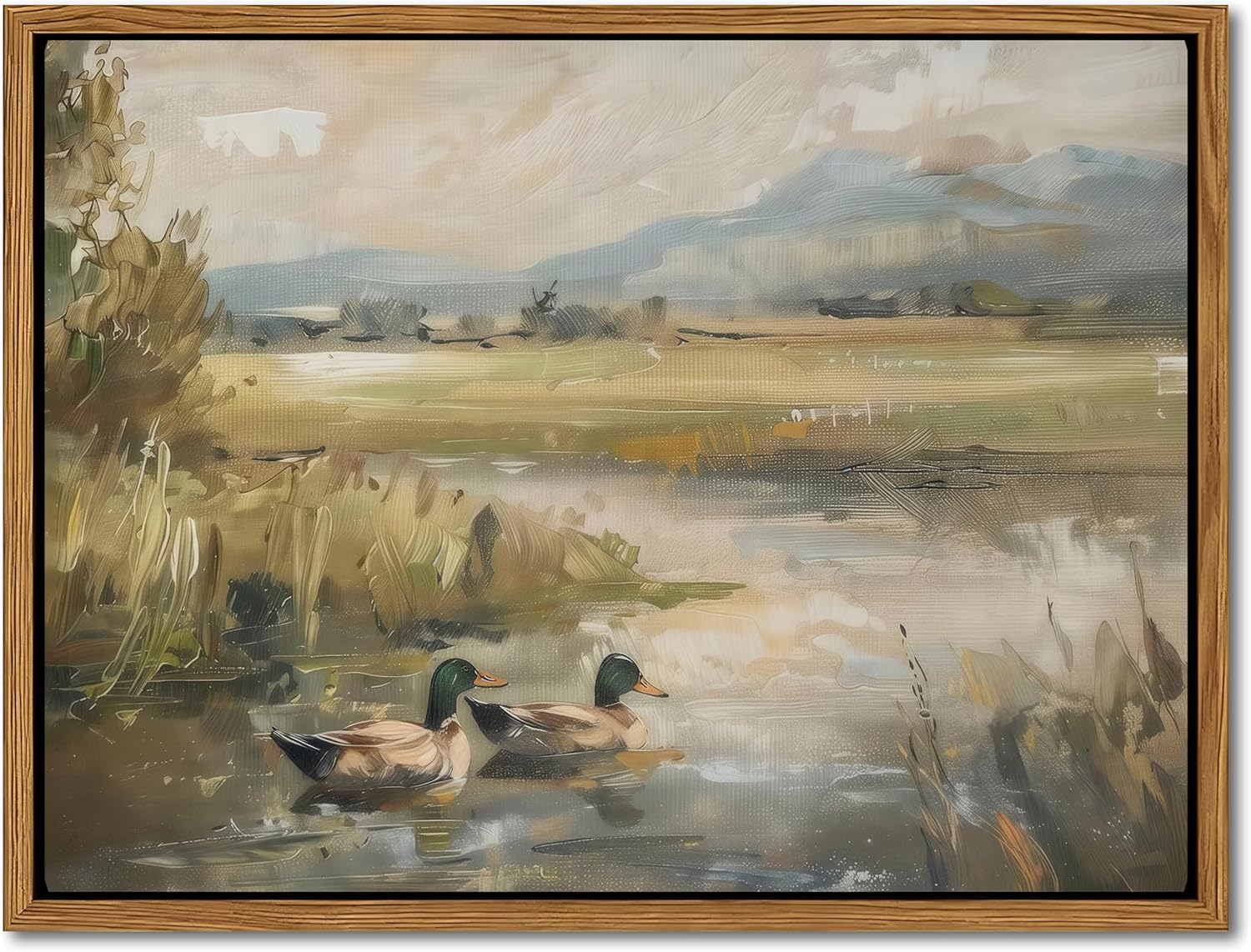 - Framed Canvas Wall Art: This vintage mallard duck oil painting print brings nature’s beauty into your home with a serene wildlife scene. Perfect for adding a touch of rustic elegance to your living room, bedroom, or office.