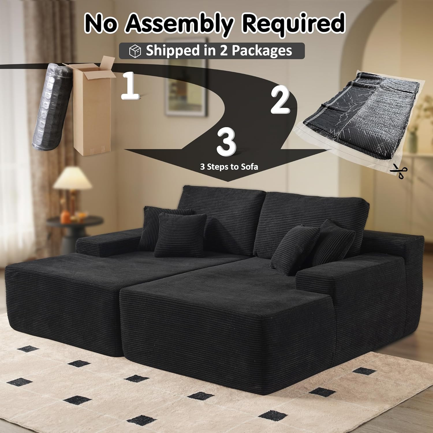 ovios 81" Oversized Sectional Double Lounge Chaise with Cloud Plush Sofa Bed, No Assembly Required, Fluffy Modern Sleeper Loveseat Chair for Indoor Living Room Bedroom Reading, Black (Corduroy Fabric)