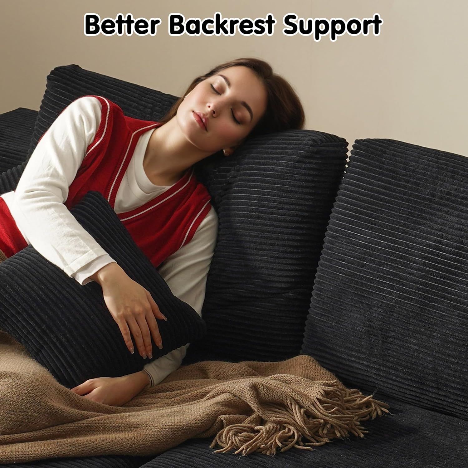 - Corduroy Fabric:Experience the lavish comfort of our enhanced corduroy fabric, offering unmatched softness and warmth. Its impressive durability and stain-fighting prowess keep your sofas looking fresh and lively. With a variety of color choices, our corduroy chaise sofa lets you showcase your unique style while adding irresistible charm to your space