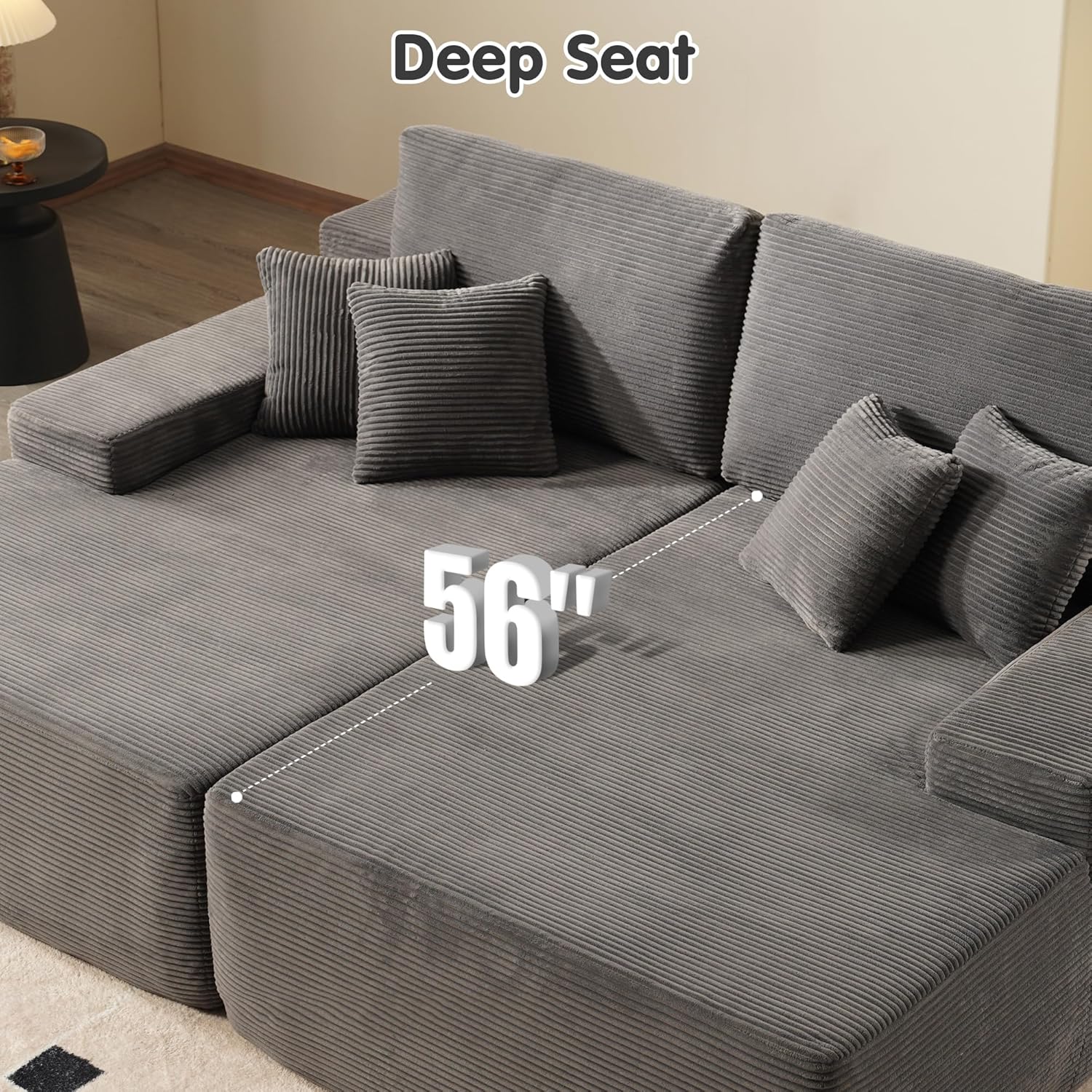 - Corduroy Fabric:Experience the lavish comfort of our enhanced corduroy fabric, offering unmatched softness and warmth. Its impressive durability and stain-fighting prowess keep your sofas looking fresh and lively. With a variety of color choices, our corduroy chaise sofa lets you showcase your unique style while adding irresistible charm to your space