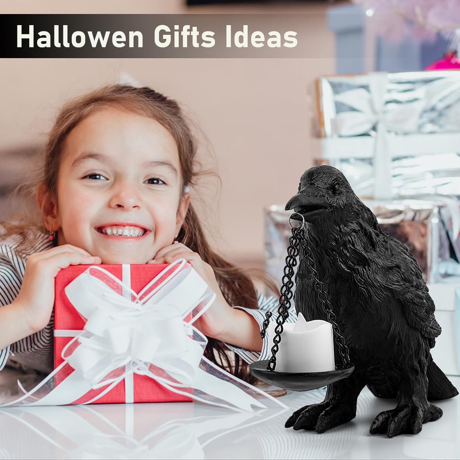 - Gothic Halloween Decor: Enhance your Halloween ambiance with the eerie Crow Lamp, featuring a crow holding a black plate that can hold tealights or fake candles. This unique piece adds a touch of mystery and sophistication to your Halloween decor.