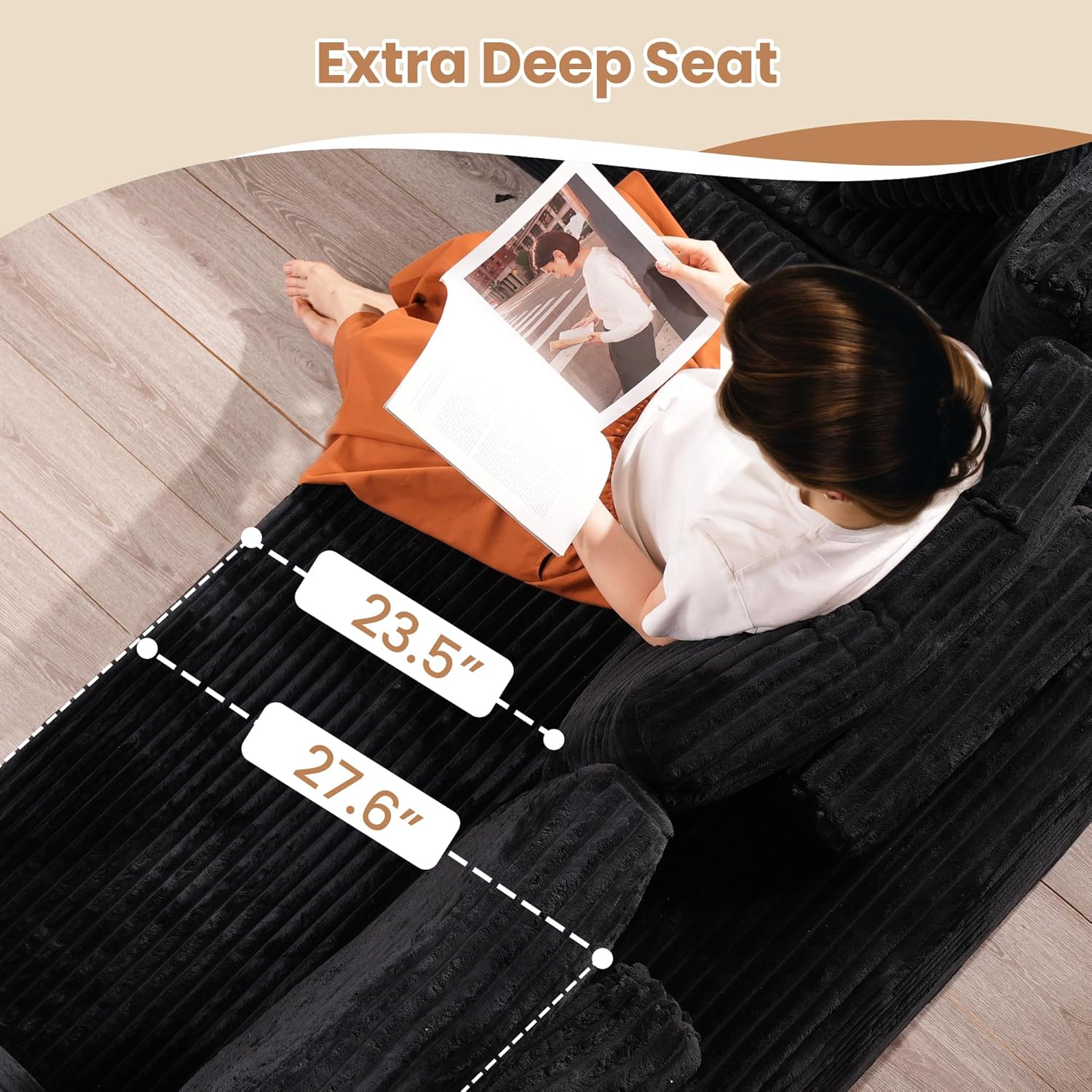 HOOOWOOO Cloud Sectional Couches for Living Room,Modular Sectional Sofa No Assembly,133X108 Inch Plush Corduroy Large U Shaped Floor Couch Set with Deep Seat Right Chaise(Black)