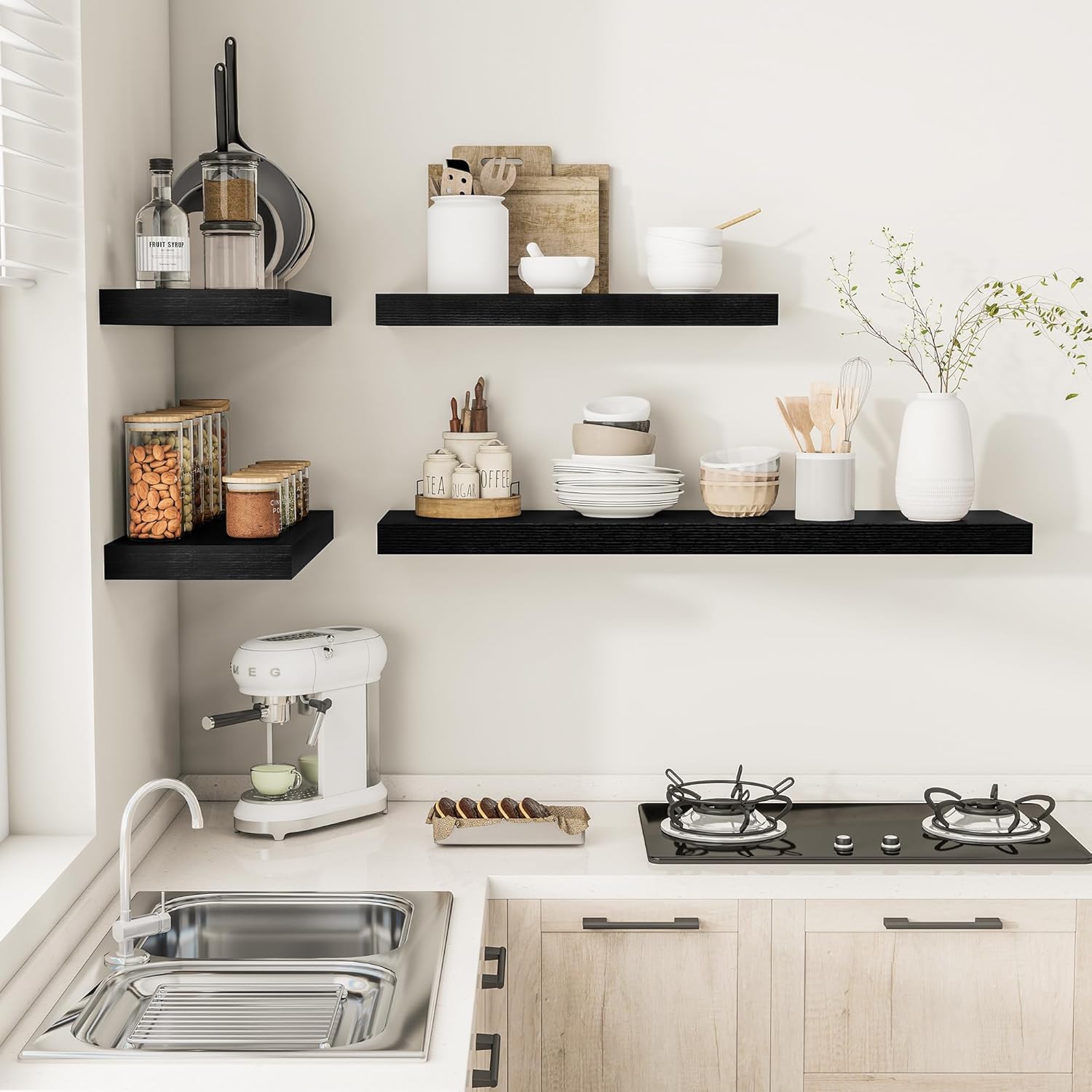 - Sturdy and Easy to install: Includes all necessary hardware to make these floating shelves extremely easy to assemble. We also provide you with detailed install instructions for you to install the shelves in a few minutes.If youâre looking for an easy way to add some functional style to your room, It highly recommend definitely recommend giving these a try!