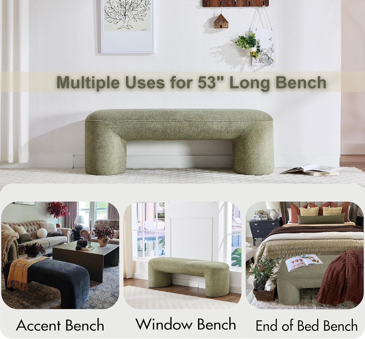 3-Piece 53" Comfy Upholstered Dining Bench with 2 Ottomans, Accent Waterfall Bench Modern End of Bed Entryway Bench Vanity Stool, Green Chenille