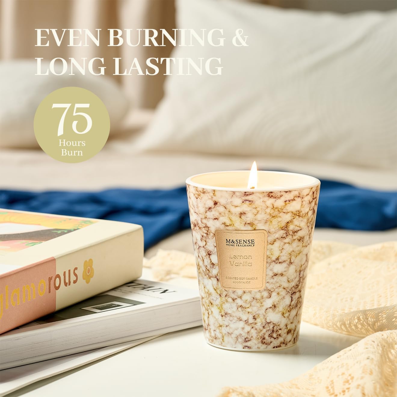 M&SENSE Sugared Lemon Zest Scented Candles for Home, Lead-free Wick Highly Scented Jar Candles, 14.1 Oz 80 Hours Lasting Burning Candles Gifts for Women, Relaxing Aromatherapy Candle for Stress Relief