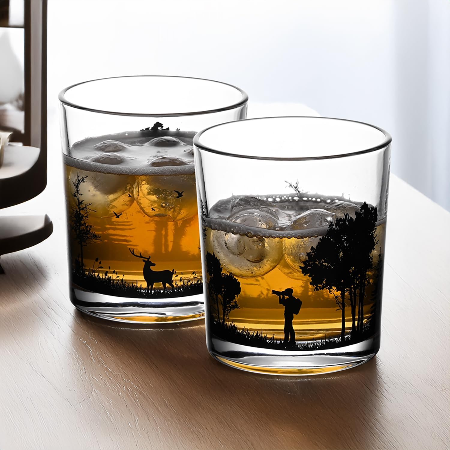 - 🔸Your Ritual, Elevated Each heavy-based glass features eye-catching, oven-set prints — from majestic wildlife to rustic landscapes. More than drinkware, they’re conversation catalysts for your bar, reflecting what fuels your soul. Perfect for: Hobby Tribes (Campers 🏕, Anglers 🎣, Stargazers 🌌) Gift Seekers 🎁: “For the friend who finds poetry in pine forests or whiskey sunsets.