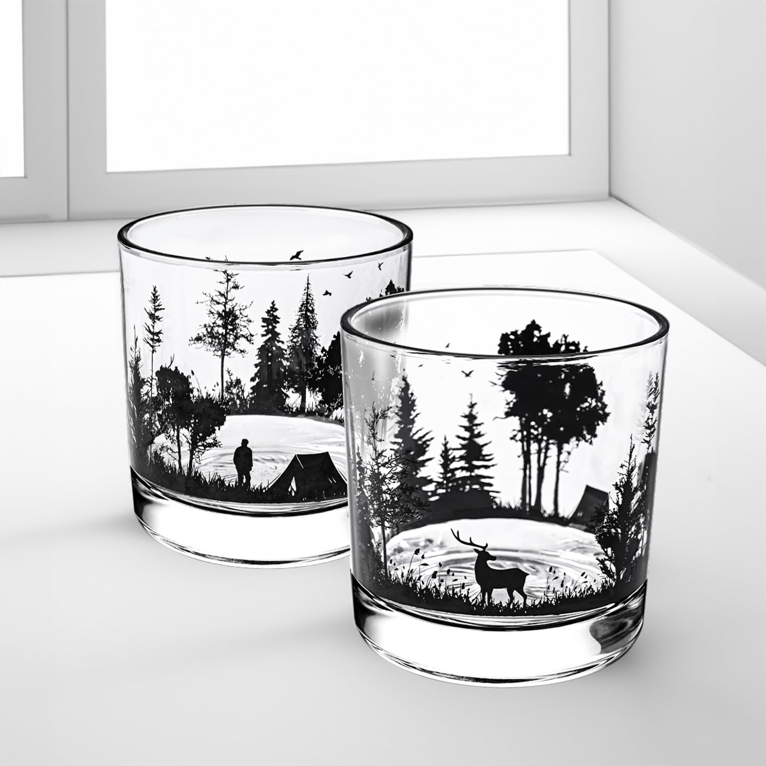 - 🔸Your Ritual, Elevated Each heavy-based glass features eye-catching, oven-set prints — from majestic wildlife to rustic landscapes. More than drinkware, they’re conversation catalysts for your bar, reflecting what fuels your soul. Perfect for: Hobby Tribes (Campers 🏕, Anglers 🎣, Stargazers 🌌) Gift Seekers 🎁: “For the friend who finds poetry in pine forests or whiskey sunsets.