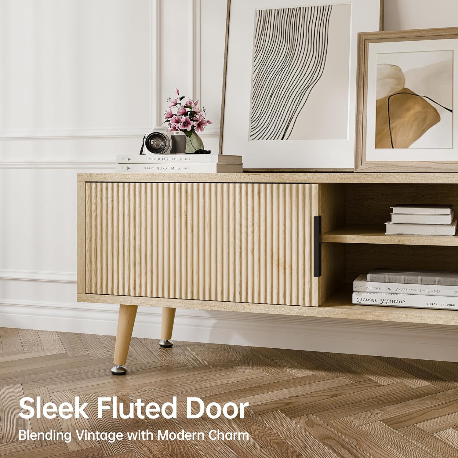 Mid Century TV Stand, Modern TV Console for TVs up to 70 Inches, Entertainment Center with Storage, TV and Media Consol, 62 Inch (Oak)