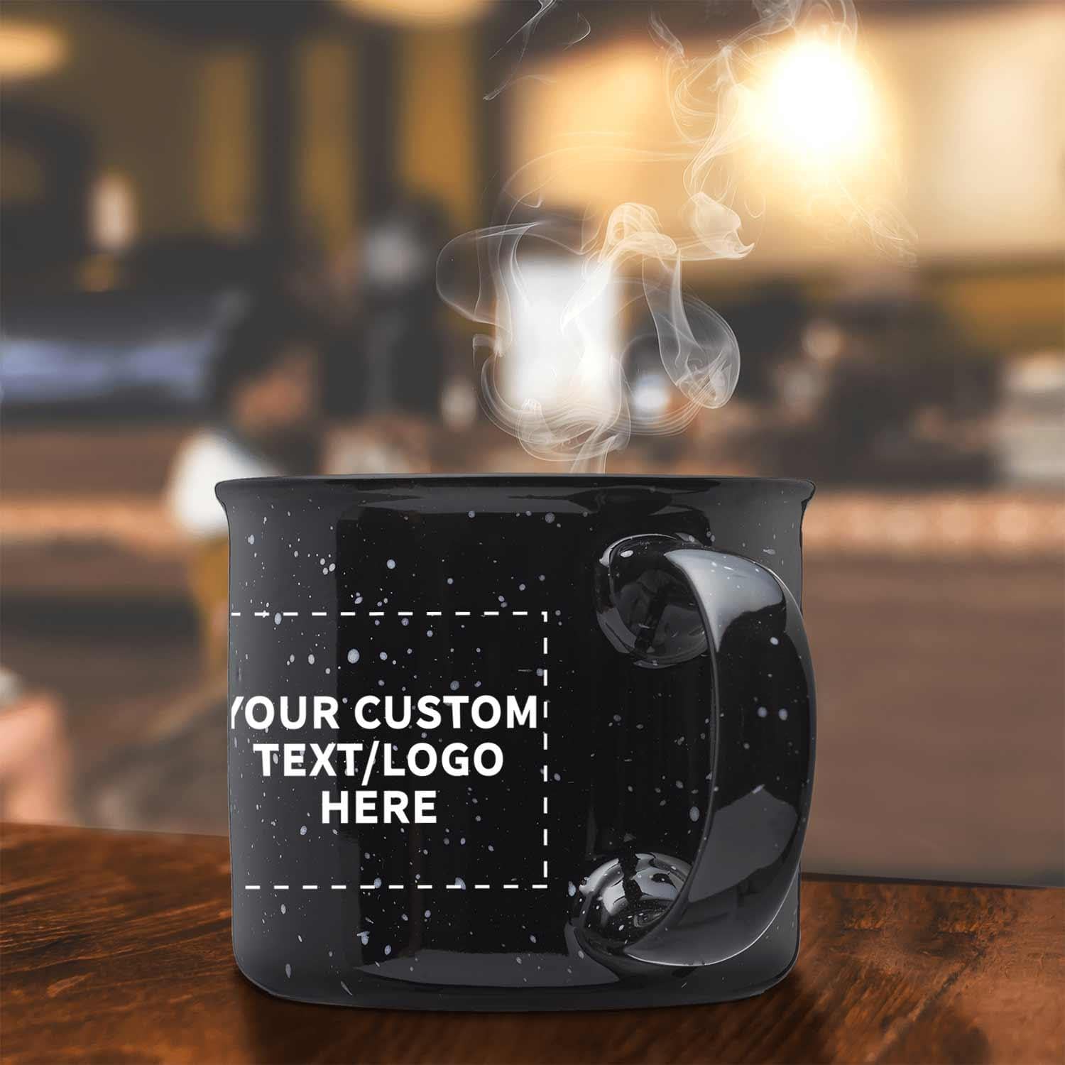 DISCOUNT PROMOS Custom Ceramic Campfire Coffee Mugs 13 oz. Set of 1, Personalized Bulk Pack - Perfect for Tea, Espresso, Cappuccino, Hot Cocoa - Black