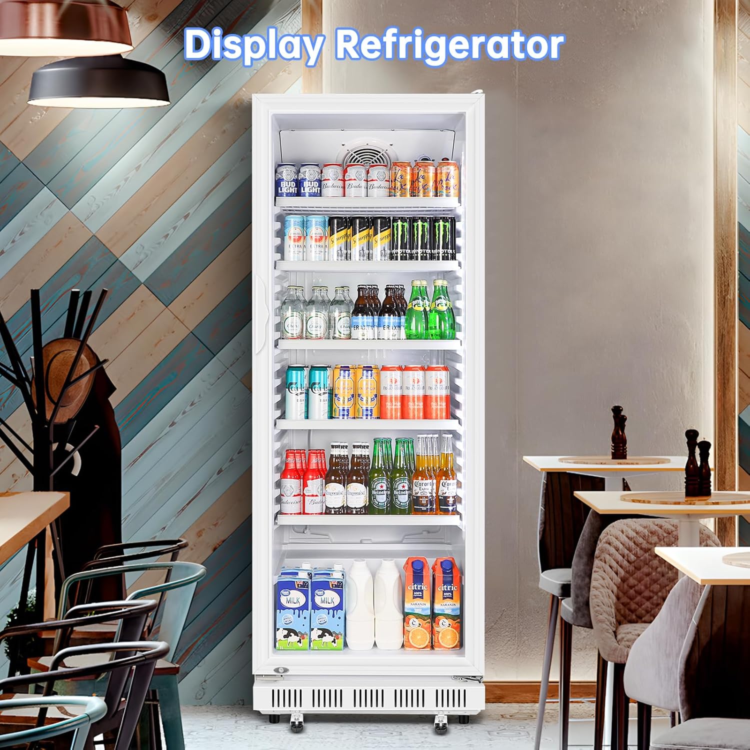 Commercial Beverage Refrigerator, 24.5 Inch 15 Cu. Ft. Drink Fridge, Display Refrigerator with Glass Door, Commercial Display Fridge with 5 Adjustable Shelves, for Shops, Restaurants, Bars