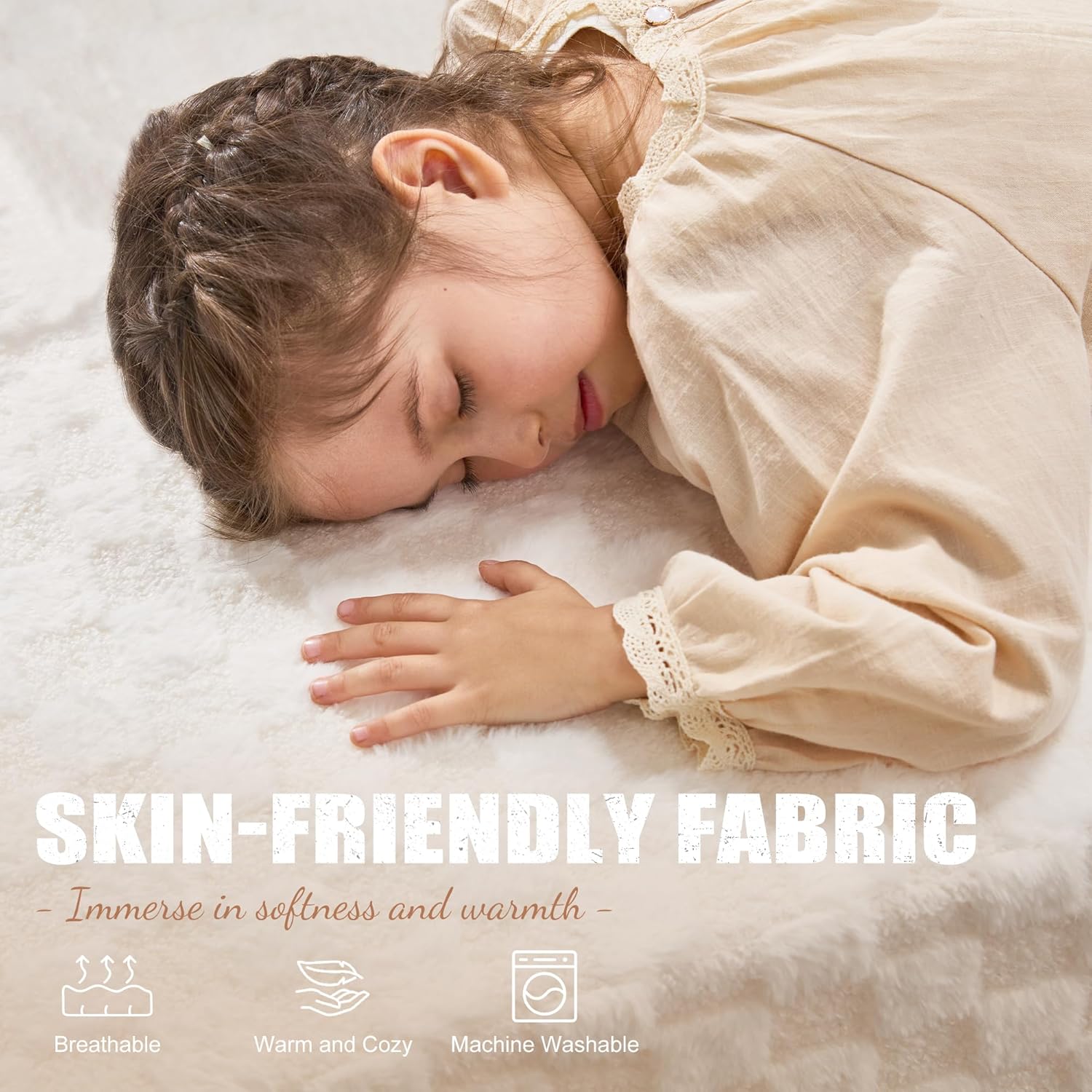 Hobestluk Rectangle Ottoman Memory Foam Footrest for Couch with Removable Cover Large Floor Seating for Adults Ottoman Coffee Table for Living Room, Bedroom or Office (Plush White, Footrest)