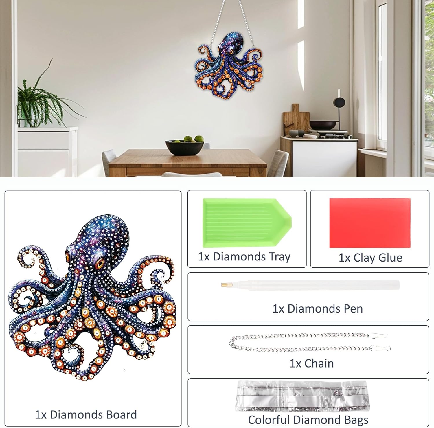 SENQAO Octopus Diamond Art Hanging Kit for Adult, Special Shaped Rhinestone, Double Sided DIY Acrylic Diamond Art Painting Window Pendants Home Garden Wall Hanging Kits Hanging Ornament