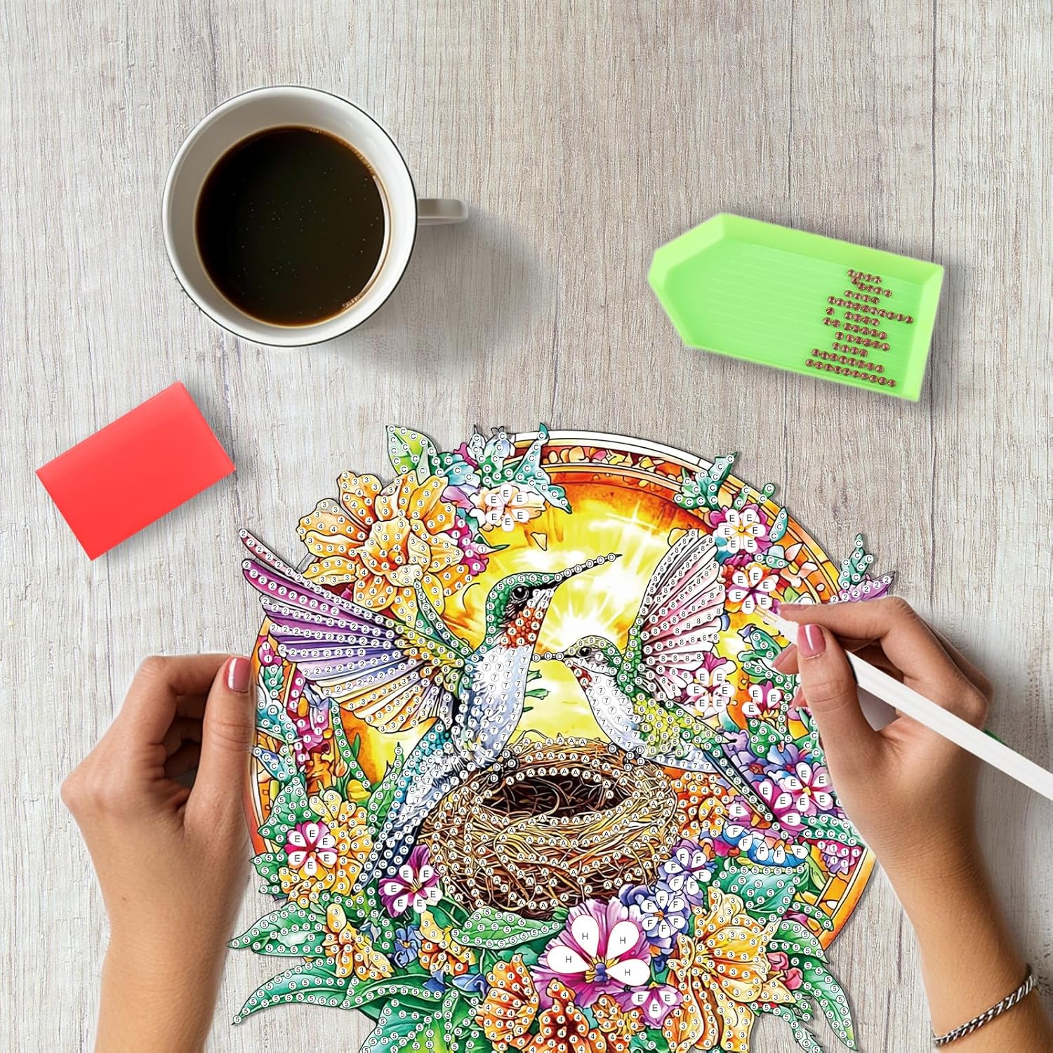 - Diamond Painting Kit Include: Package comes with enough colorful diamonds, diamond hanging plate x1, iron chain x1, point diamond pen x1, cube x1, diamond tray x1, red glue clay x , with beautifully crafted boxes, providing everything needed for art completion