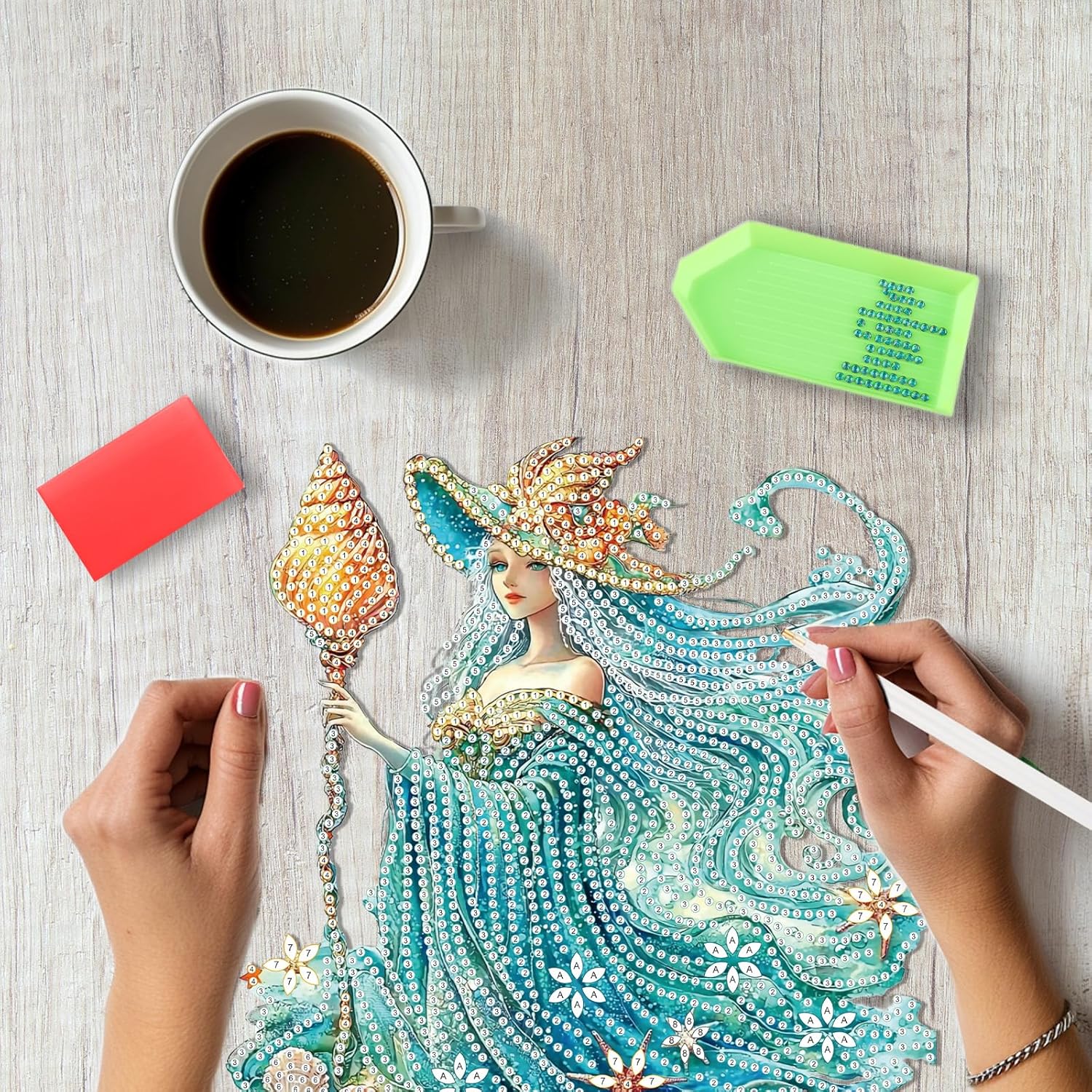 SENQAO Fairy Diamond Art Hanging Kit for Adult, Special Shaped Rhinestone, Double Sided DIY Acrylic Diamond Art Painting Window Pendants Home Garden Wall Hanging Kits Hanging Ornament (Shell Witch)