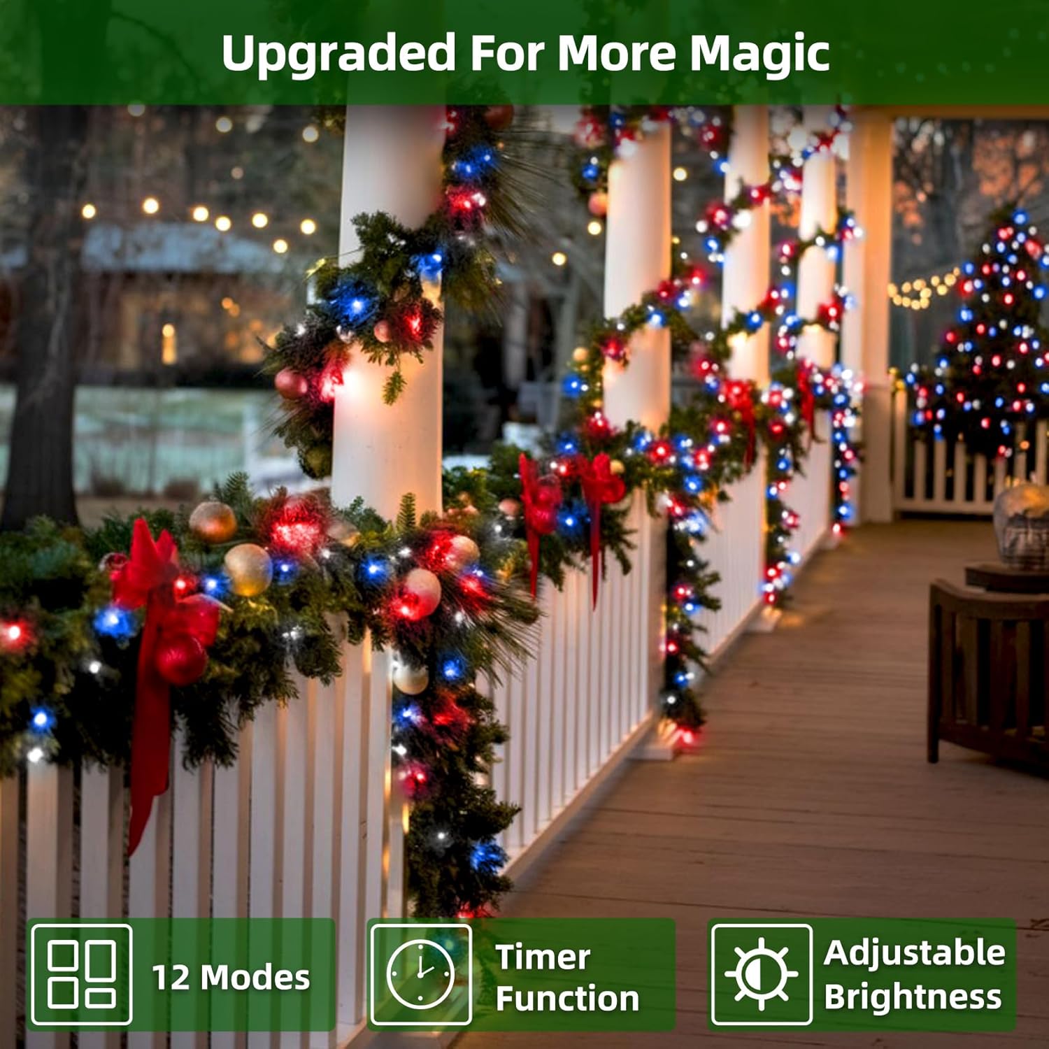 1500 LED 470FT Christmas Lights Outdoor,12 Lighting Modes Christmas String Lights with Timer, Dimmable Plug in Red White and Blue LED StringLights Waterproof for Yard Tree Wedding Party Holiday