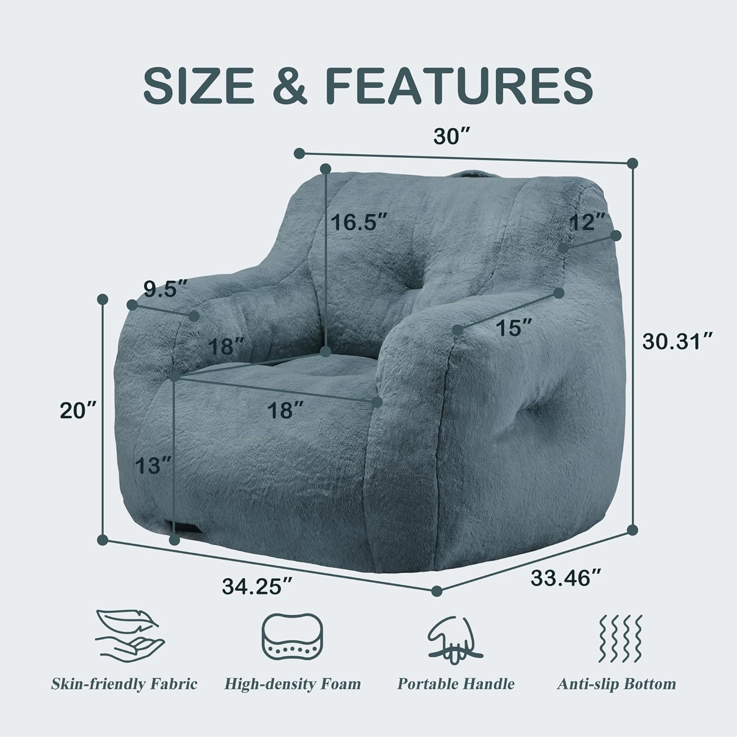 Hobestluk Bean Bag Chair for Adult Small Bean Bag Chairs with Arms Furry Beanbag Chair with Foam Filler Stuffed Bean Bag Sofa for Reading in Bedroom Living Room and Dorms (Blue Grey)