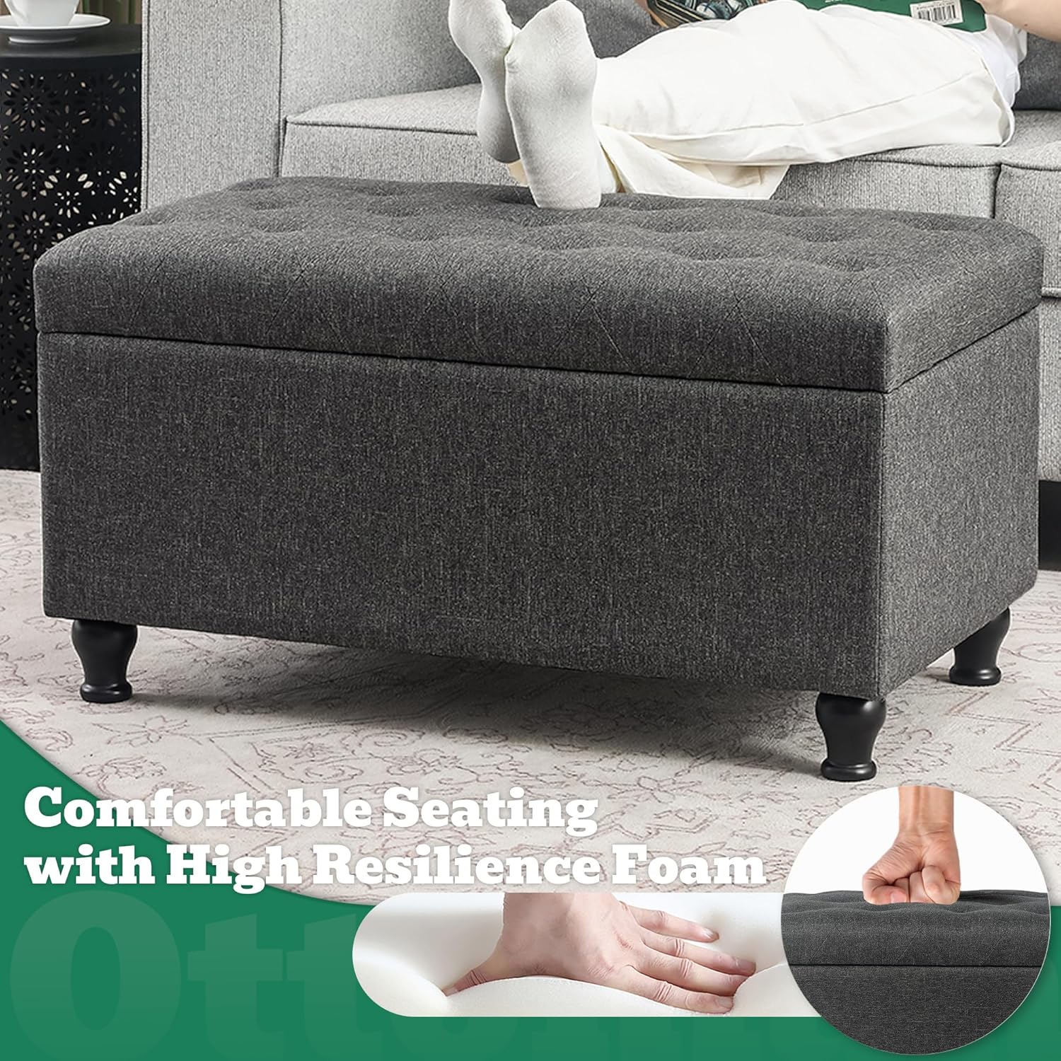 - ăVersatile Design for Multiple Usesă- Whether you need extra seating, a comfortable footrest, or a practical storage solution, this ottoman with storage does it all. Its versatile design makes it ideal for use in bedrooms, living rooms, entryways, or any area where you need both seating and storage.