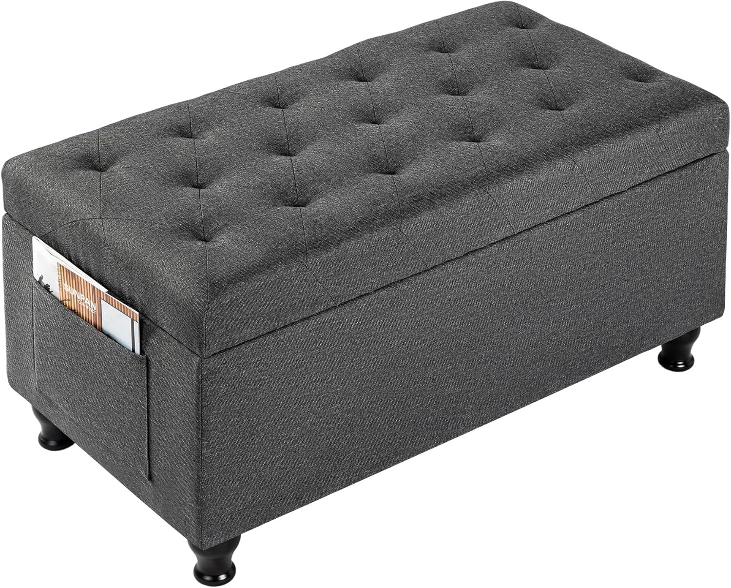 Ottoman with Storage 32'' Ottoman Storage Bench Linen Fabric Ottomans Footstools Upholstered Foot Rest Stool for Couch, Living Room, Bedroom, Entrance Shoe Bench Dark Gray